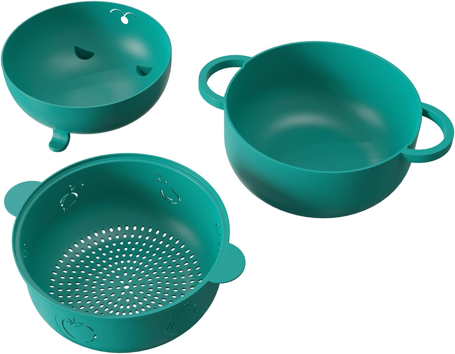 - Multifunctional: The middle drain bowl also doubles as a colander; Gently rinse fruits, veggies or pasta