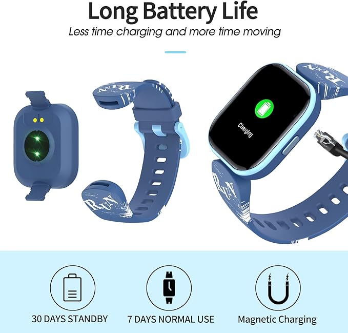 - 【Easy To Charge & Long Battery Life】Kids can charge the fitness watch very easy with the Magnetic charging cable. The fitness tracker takes only 2 hours to fully charge providing a 5-7 days battery life. which means kids can use it without worries of charging the tracker constantly, spend less time charging and more time palying.