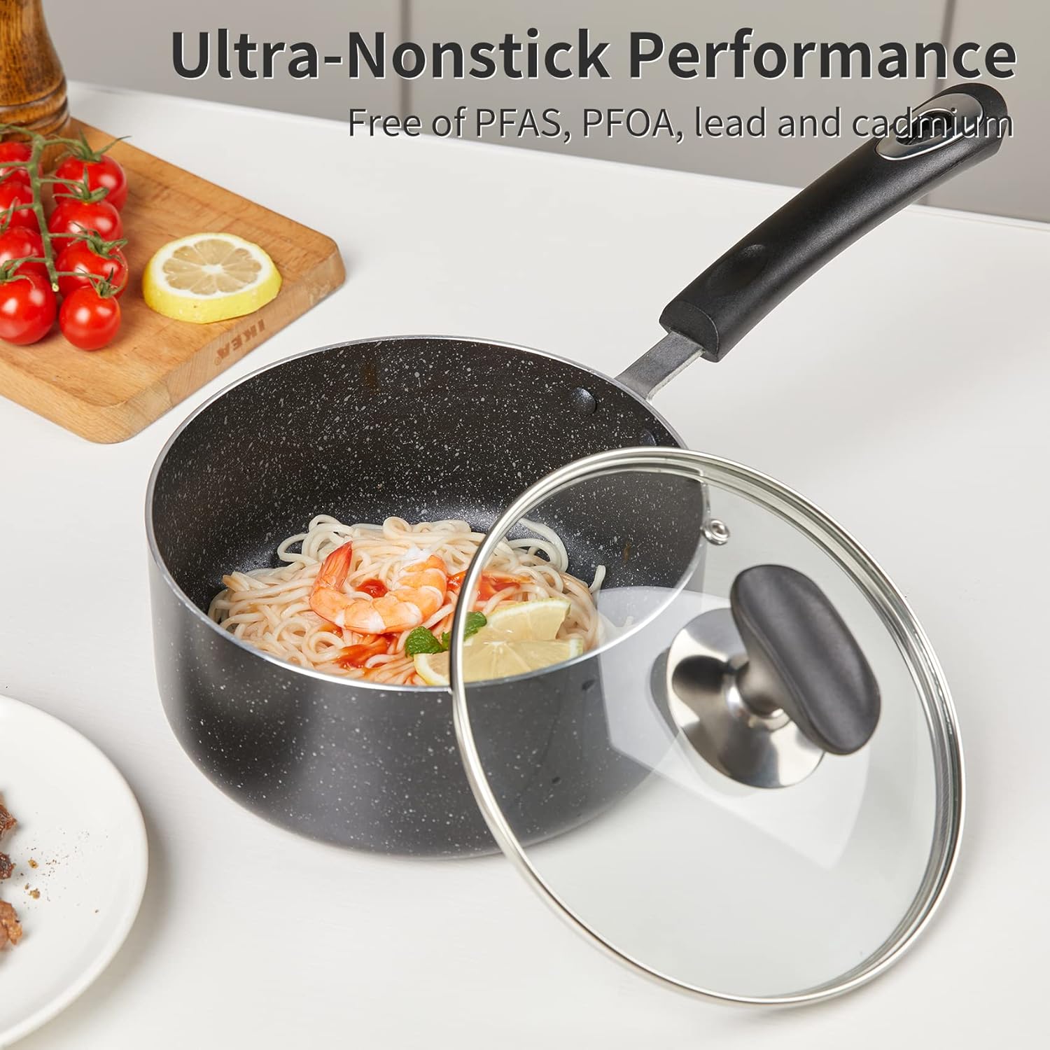 Nonstick Saucepan Set with Lid, Non Stick 1.5QT & 2.5QT Sauce Pan Set with Glass Lid Small Pot for Home Kitchen