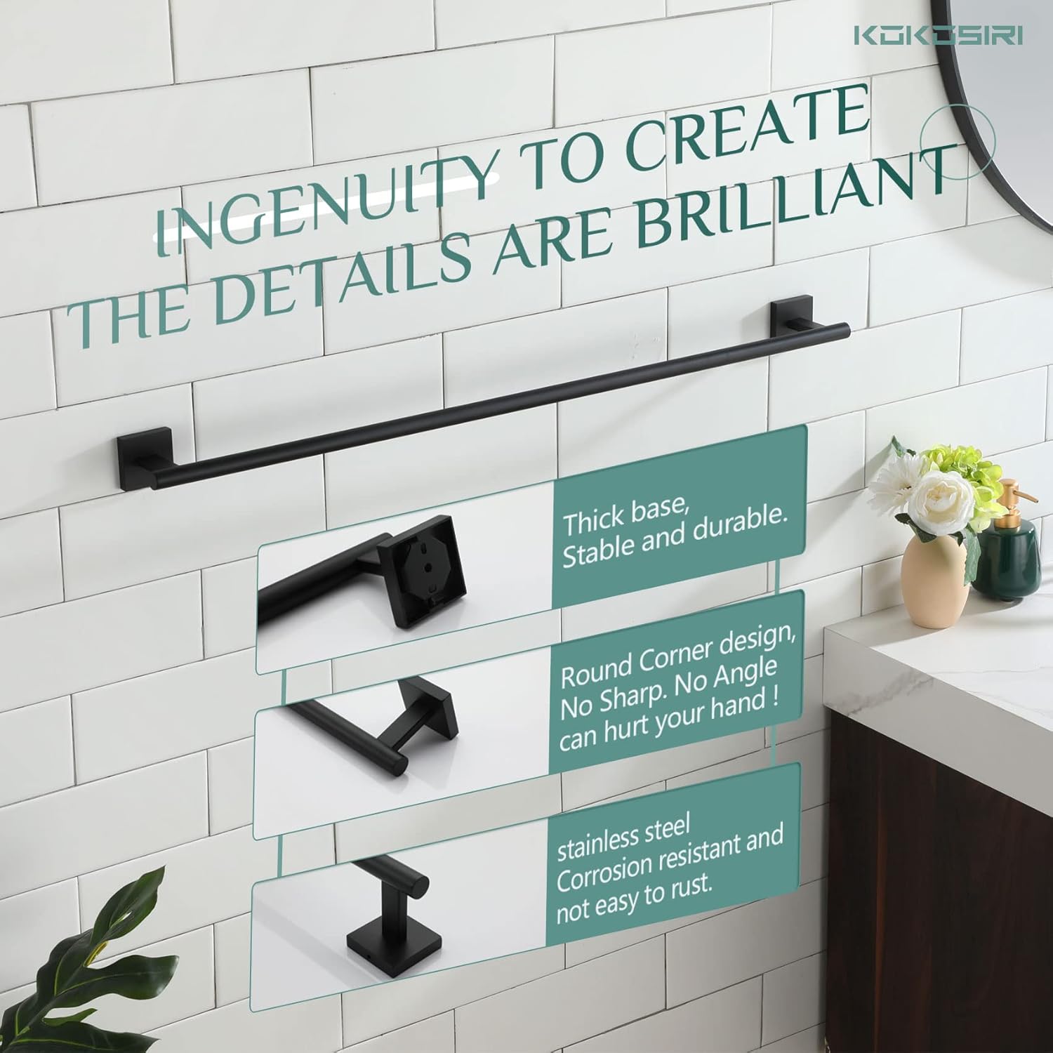 KOKOSIRI 32'' Towel Rails Bathroom Towel Bars Matte Black 32 Inch Bath Towel Holder for Washroom Kitchen Wall Stainless Steel B4005BK-L32