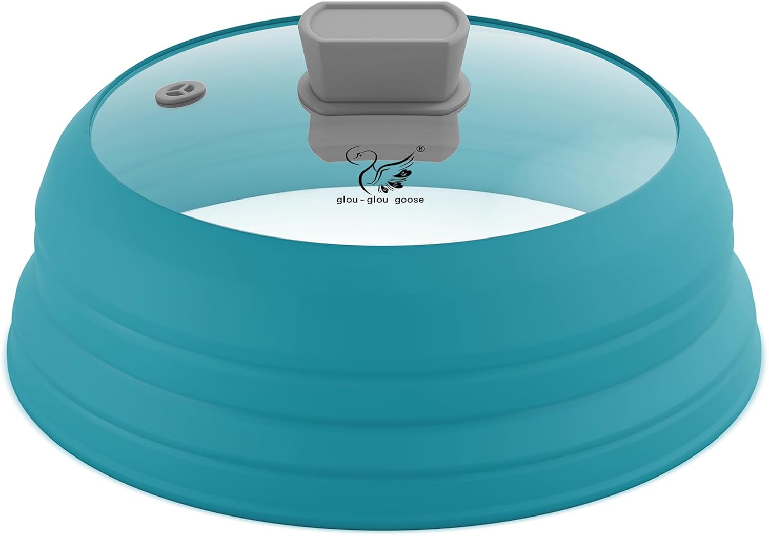 Microwave Splatter Cover Glass Cover Splatter Guard Lid with Collapsible Silicone for Food Cover Plate Cover 10.8 inch Blue