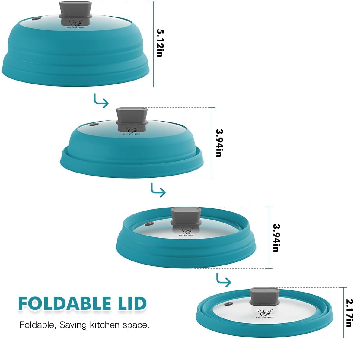 Microwave Splatter Cover Glass Cover Splatter Guard Lid with Collapsible Silicone for Food Cover Plate Cover 11.8 inch Blue