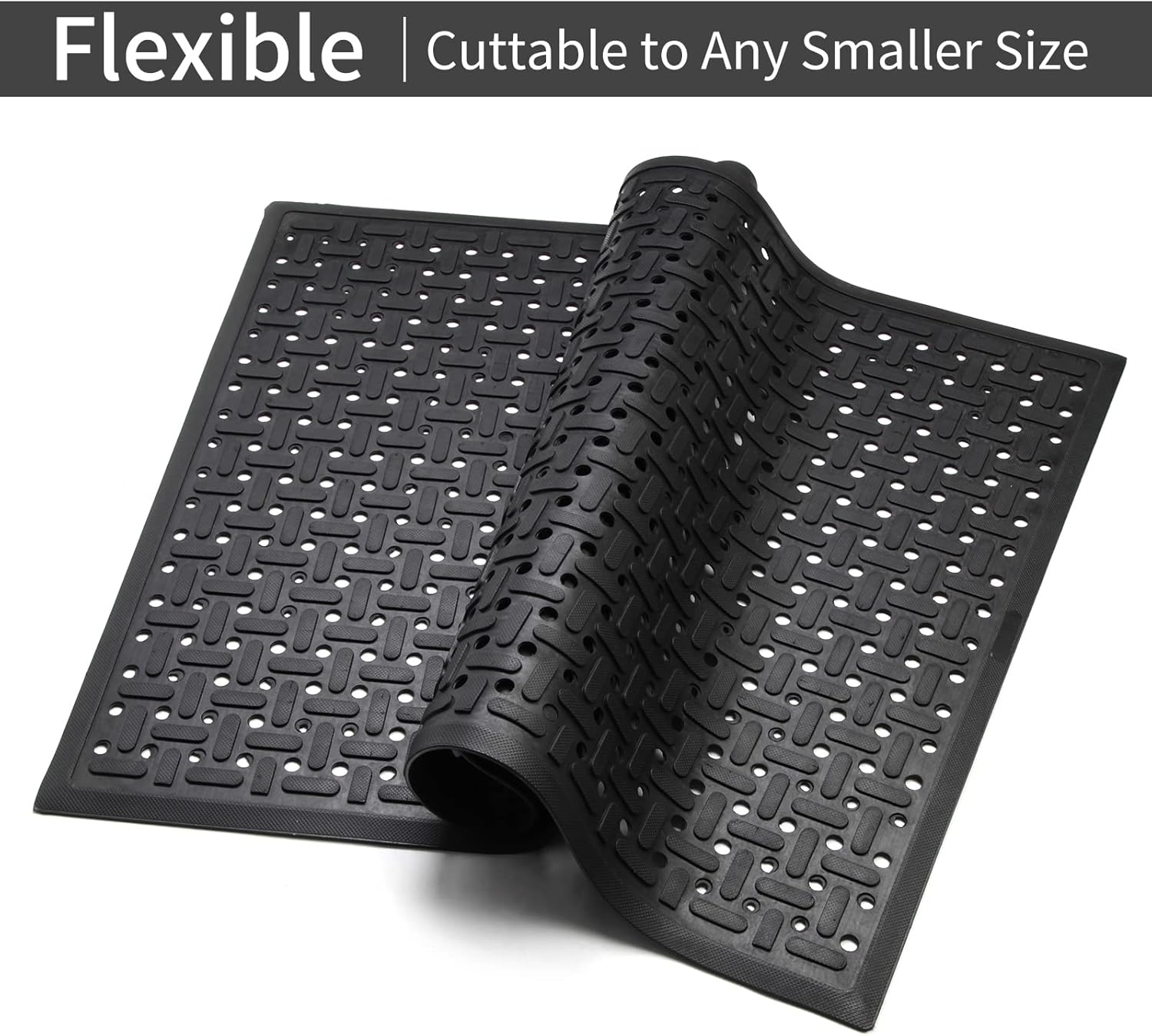 Rubber Non-Slip Waterproof Floor Mat Heavy Duty Anti-Fatigue Mats 33"x57" for Wet or Snow Deck, Restaurant Bar Kitchen Yard Boat