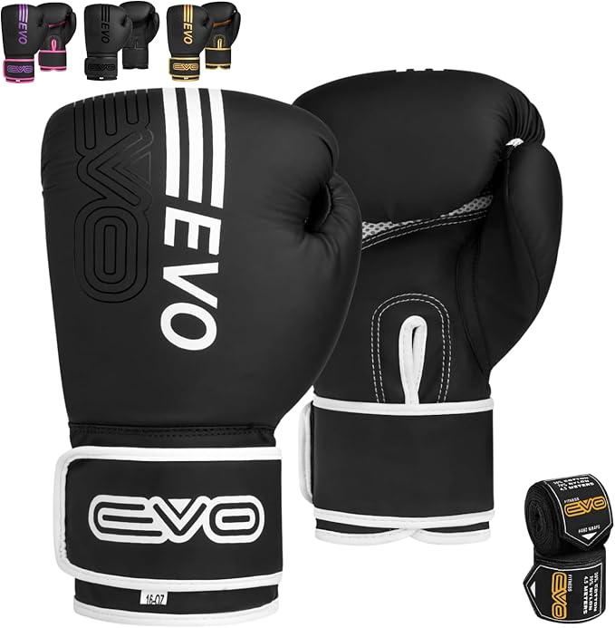 - ✅ [QUALITY WITH EXTRA BONUS]: EVO Fitness Men Women Boxing Gloves or mma gloves or boxing gloves men are Made up of High Quality and Beautiful Matte Finish Faux Leather with FREE 4.5-Meter-Long Black Boxing Hand Wraps.