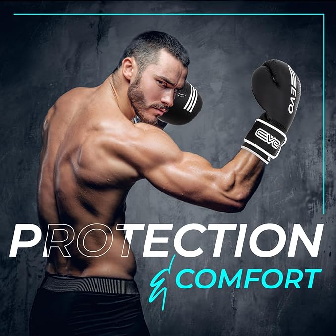 - ✅ [PROTECTION AND COMFORT]: EVO Fitness boxing gloves women or muay thai gloves or mma gloves men Provide Ultimate Protection and Shock Absorption with High Density Injection Moulded EVA Foam Core and GEL Protection.