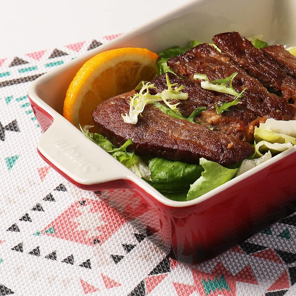 - 【Stylish Rectangular Baking Dish】The rectangular baking dish is equipped with a double handle design for easy food transport from the oven to the table. It is also a charming decoration in your kitchen and dining table which may impress your guests!