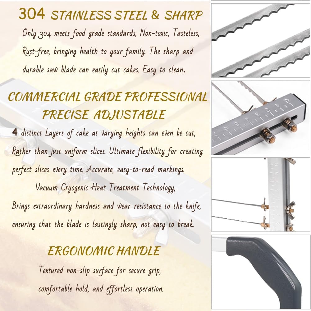 Professional Cake Cutter Slicer Leveler, Commercial 4 Layers Adjustable Stainless Steel Cakes Slice, Large Bread Cutter Toast Cutting Saw, Straight Spatula Baking Level Stratification Birthday Tools