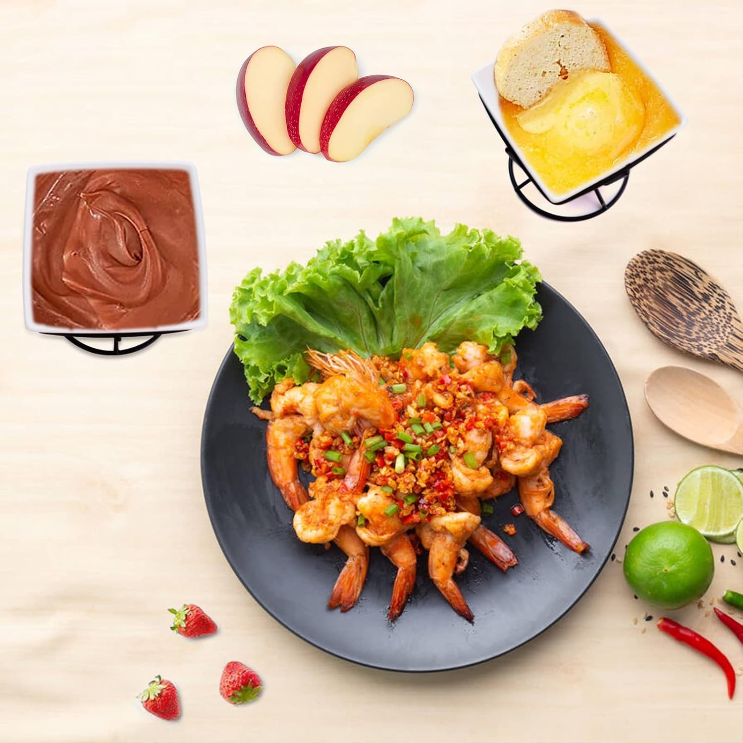 - 7oz Individual Sweet Bowl with Decent Size: Luvan 4Pcs Fondue Pot Set with 20 Tea light candles for free. Each bowl measure 4.07inch top diameter and 1.74inch height,with 7oz(118.28ml) large capacity. The metal stand is 3.43inch height.Stackable design did not waste space in the cupboard.