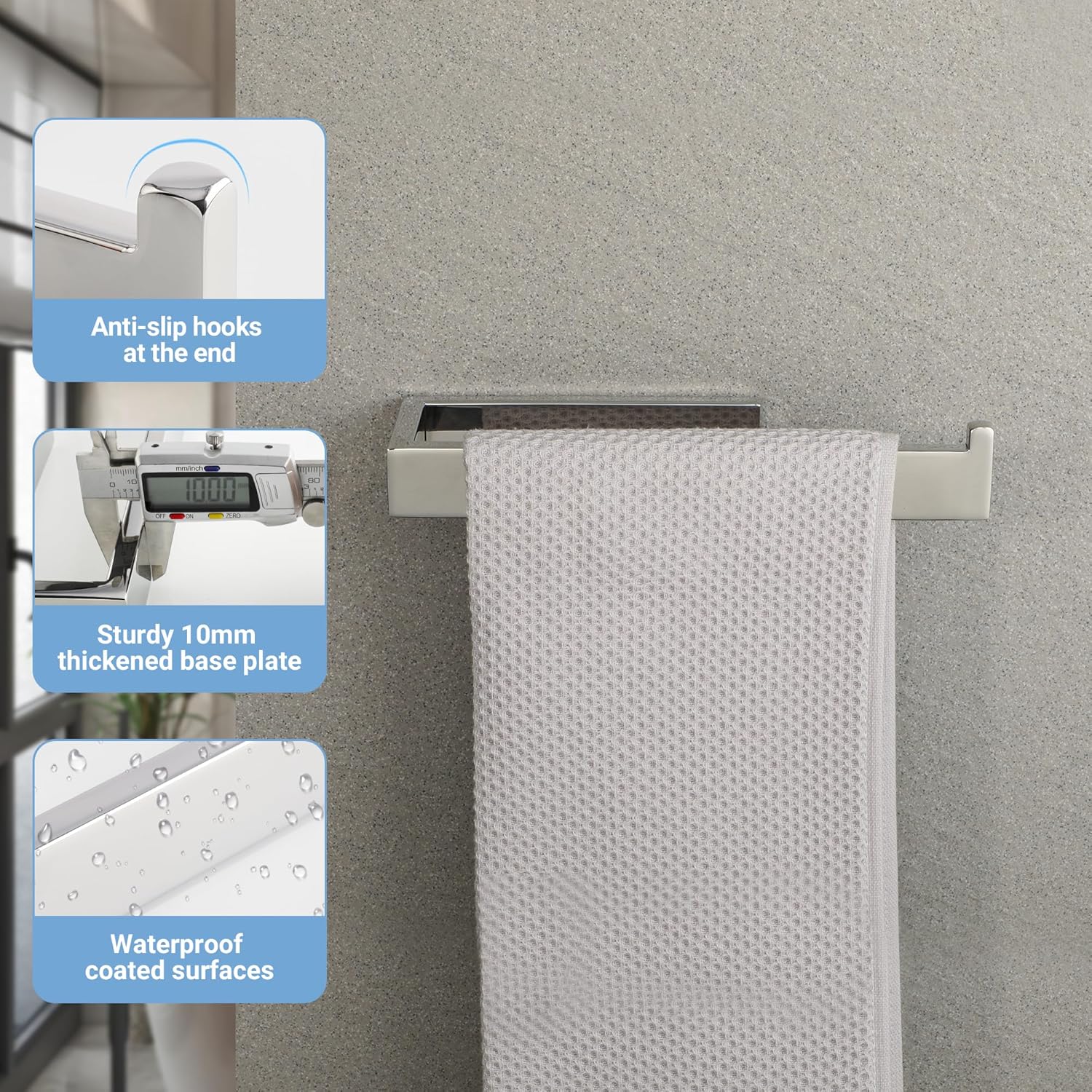 - WIDE APPLICATION - Perfect for shower, bathroom, kitchen, laundry room, cabinets, wash basins, etc. Please note, the chrome towel bar can only be fixed by drilling, not by pasting.