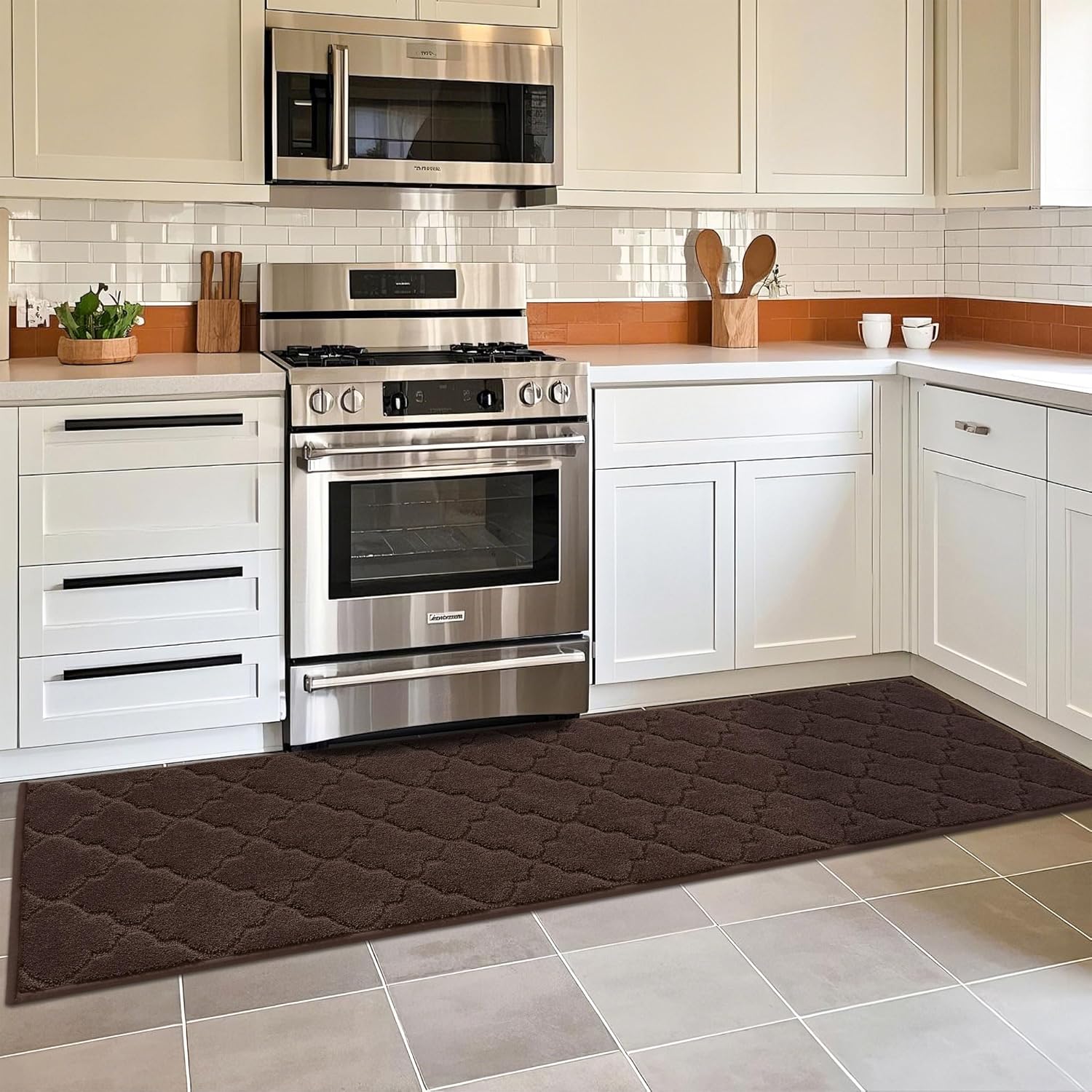 COSY HOMEER Soft Kitchen Floor Mats for in Front of Sink Super Absorbent Kitchen Rugs and Mats 20"x79" Non-Skid Kitchen Mat Standing Mat Washable,Polyester,Brown