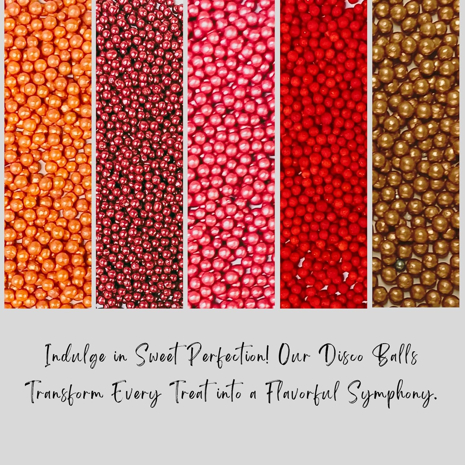 Confect Pearl Sprinkles | Edible Disco Ball Sprinkles for Cakes & Cupcakes Decoration | Pack of 5 Mix Bright Orange, Copper, Pink, Red & Bronze Dragees - Carnival |Vegan, Gluten-Free, Nut-Free, Soy-Free, Dairy-Free, Palm Oil-Free- 5 Oz