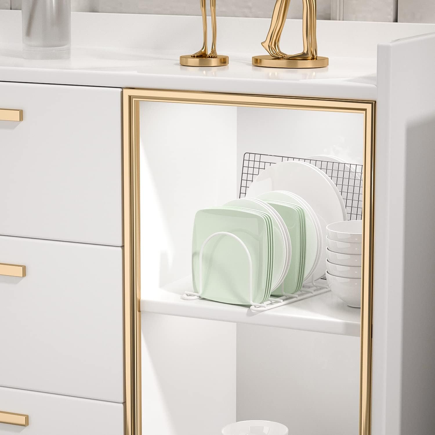 JAQ Pot Lid Rack Organizer, 10.5" Kitchenware Dividers Holder for Plates, Pans,Chopping Boards, Muffin Tins, Baking Sheets in Cabinets Shelf Countertop Pantry (White, 6-Slot)