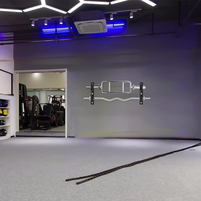 - Heavy Duty Construction - The wall mounted bar holder is made of solid steel wrapped by quality rubber, heavy and sturdy, thickened construction can easily store weight bar without bending
