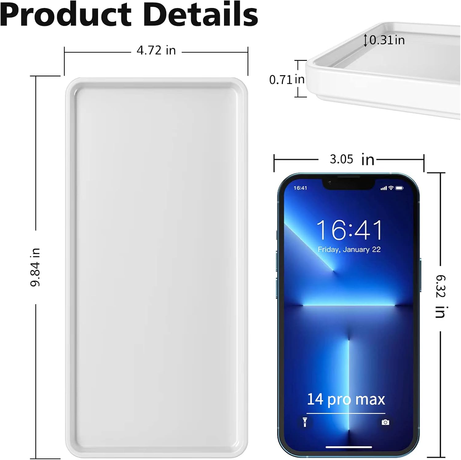 - HUMANIZED DESIGN: The four corners are all rounded right angles,which are very smooth to the touch,and the raised walls around it can perfectly protect things from falling; The bottom is non-slip and can be easily used wherever you need it
