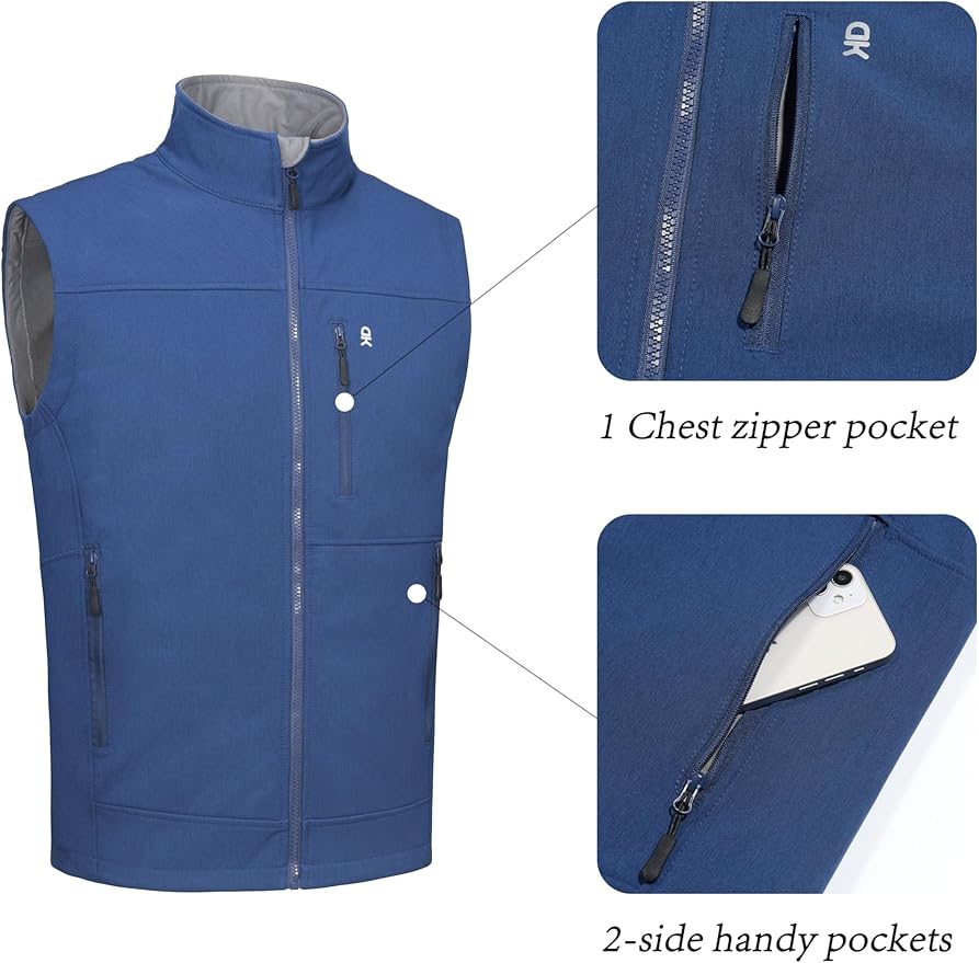 - Outdoor Vest for Men ---- This men's vest is made of soft shell fabric which is smooth with a little stretch, wipes off easily and is washable. Resists abrasion and scratches, great for work and outdoor activities such as golf, running, jogging, hiking, fishing, climbing, cycling, traveling,workout and so on. Keeping you warm and comfortable