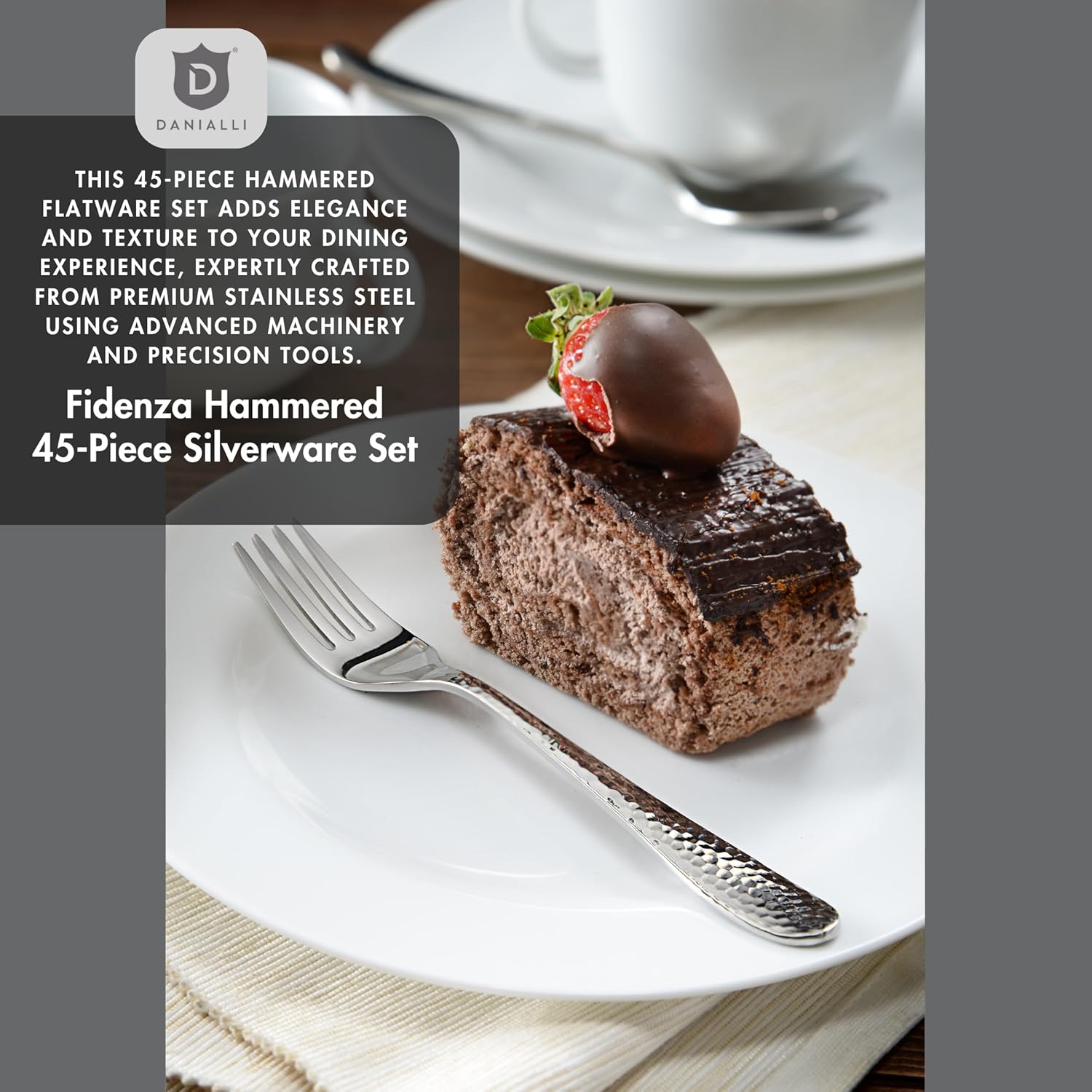 Hammered Silverware Set with Serving Utensils, 18/10 Stainless Steel Flatware for 8, Dishwasher Safe, Mirror Finish, Heavy-Duty, Built to Last (45-Piece Including a Serving Set, Fidenza Hammered)