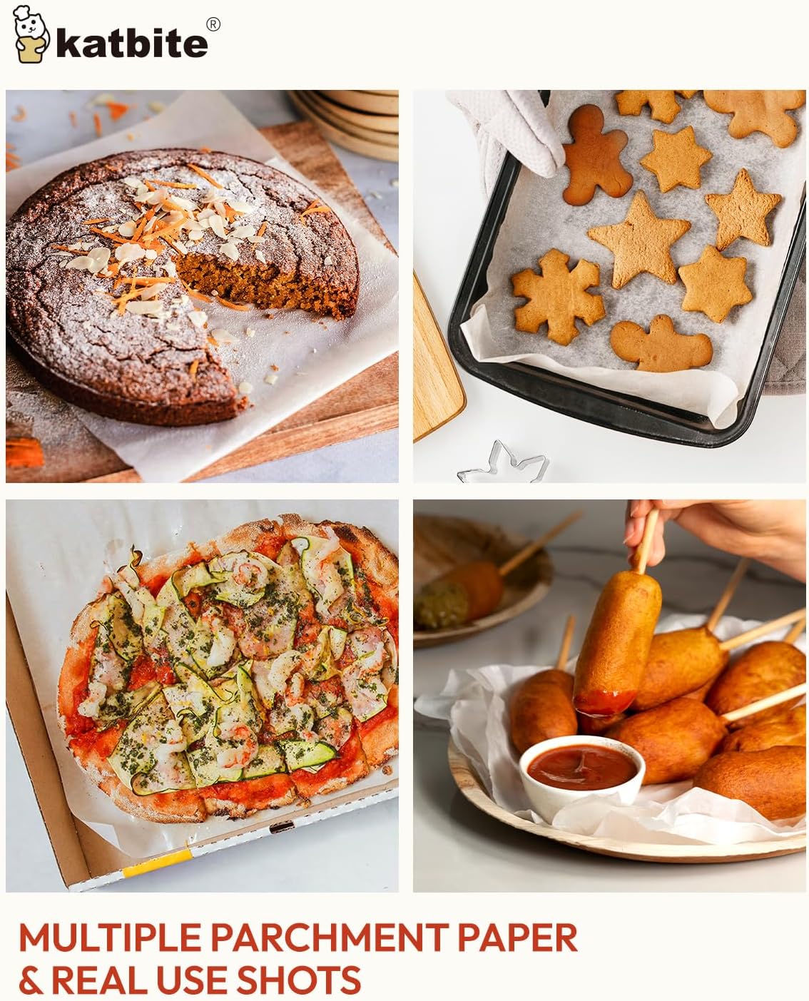 - Widely Use: Baking, Cooking or Wrapping? Pre-cut parchment paper for baking temperature resistance is from -68° F to 450° F, you can use it everywhere in kitchen whether in freezer, microwave or air fryer as long as you can think of it. Light and small baking sheet paper package make it also suitable for carrying outdoors to enjoy your food feast!