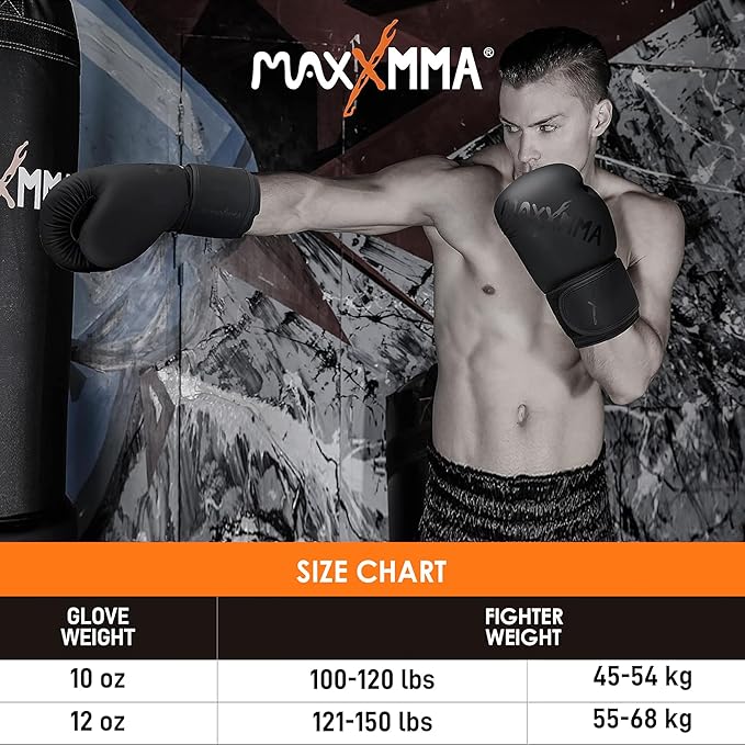 MaxxMMA Pro Style Boxing Gloves for Men & Women, Training Heavy Bag Workout Gloves, Muay Thai, Sparring Kickboxing Punching Bag Work Fight Gloves