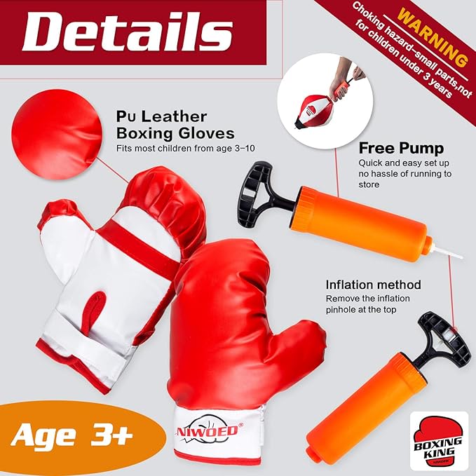 - Boxing Toys Set:This boxing toys set can convenient to store the set anywhere,It also makes it easier to carry it around wherever you want,can let your kids spend hours playing and exercising with it every day.Keep your kids away from mobile phone,pc game or TV.Improve your kids' sense of balance, hand-eye coordination and self-confidence.