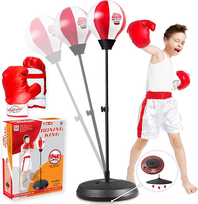 Kids Boxing Set with Stand, Includes Boxing Gloves, Punching Ball & Adjustable Stand, Sensory Sports Toys, Ages 3-10