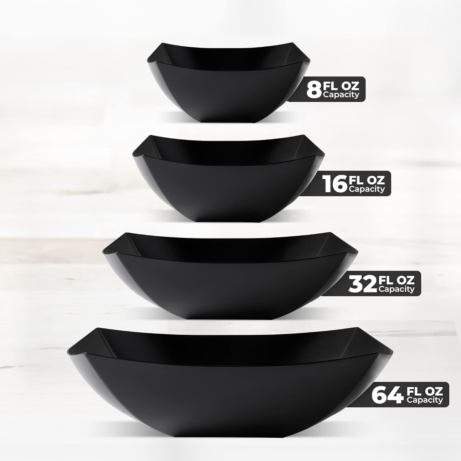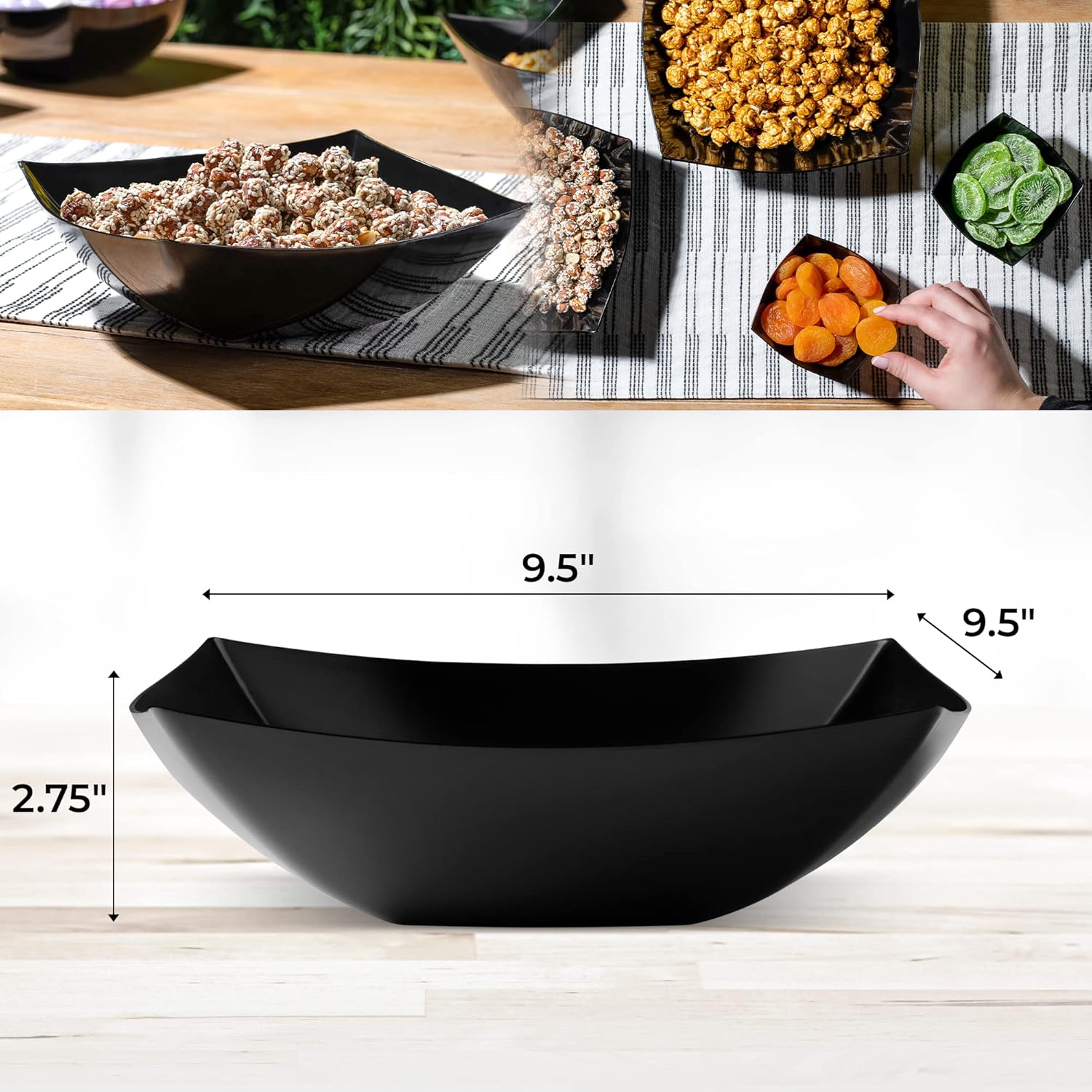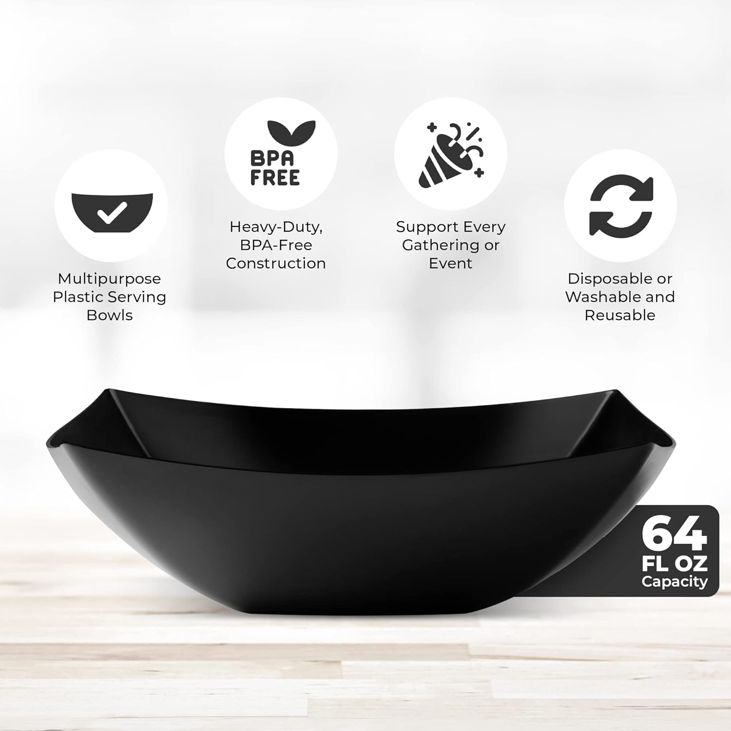 Posh Setting - Black Plastic Serving Bowls for Party (64oz - 4 Pack) Square, Disposable & Fruit Bowls for Party Table, Candy Containers for Candy Buffet