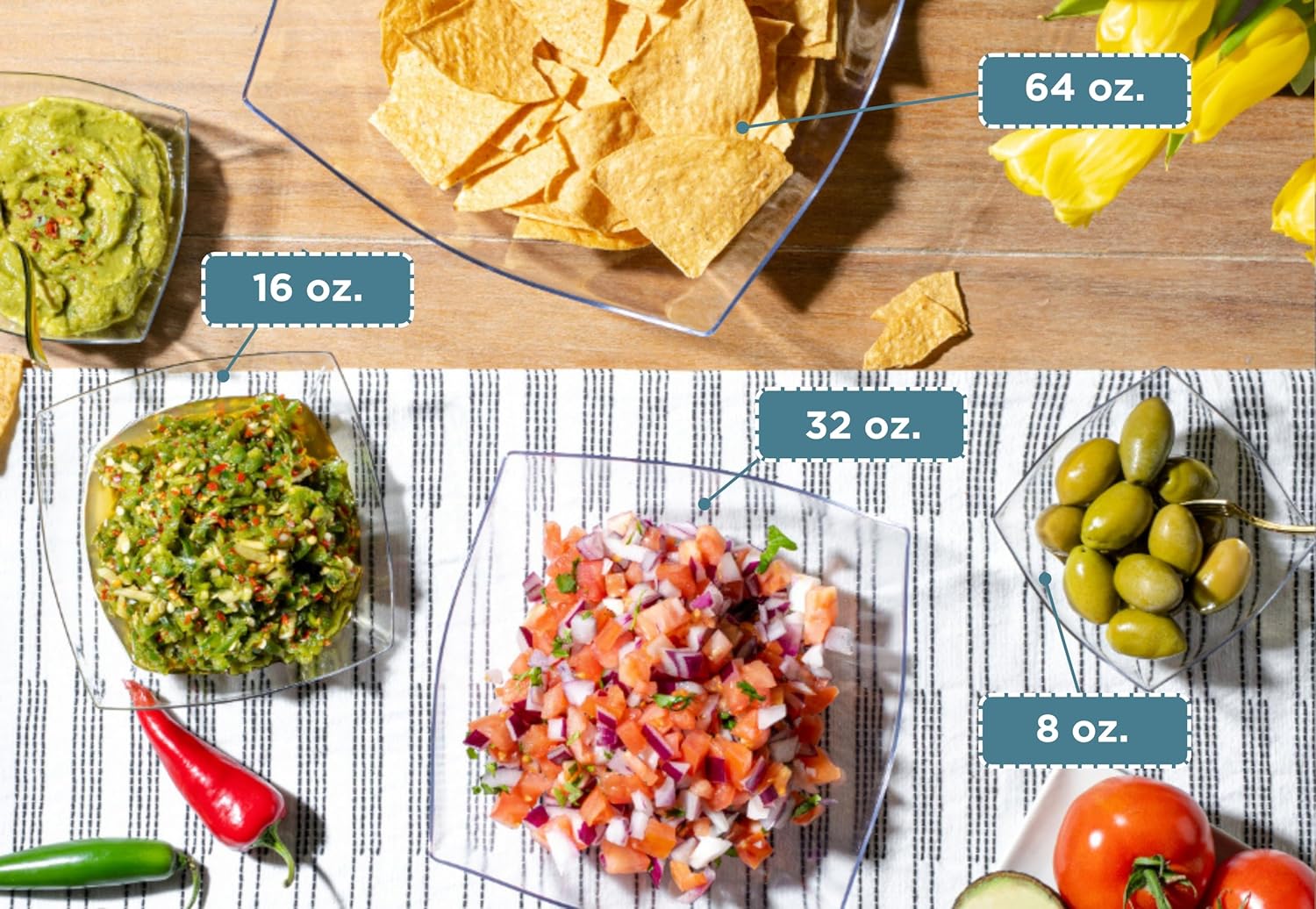 - MULTIPURPOSE USE: These 16 oz clear plastic serving bowls are great for any occasion. Whether you're hosting a salad bar, serving snacks, candies, chips, or even using them for arts and crafts, these thanksgiving serving bowls meets all your needs. Enhance your party setup with these practical and stylish bowls that fit seamlessly into any event. Use them as candy dishes, chip bowls for parties, clear plastic bowls, taco bar serving set for a party, and party bowls.