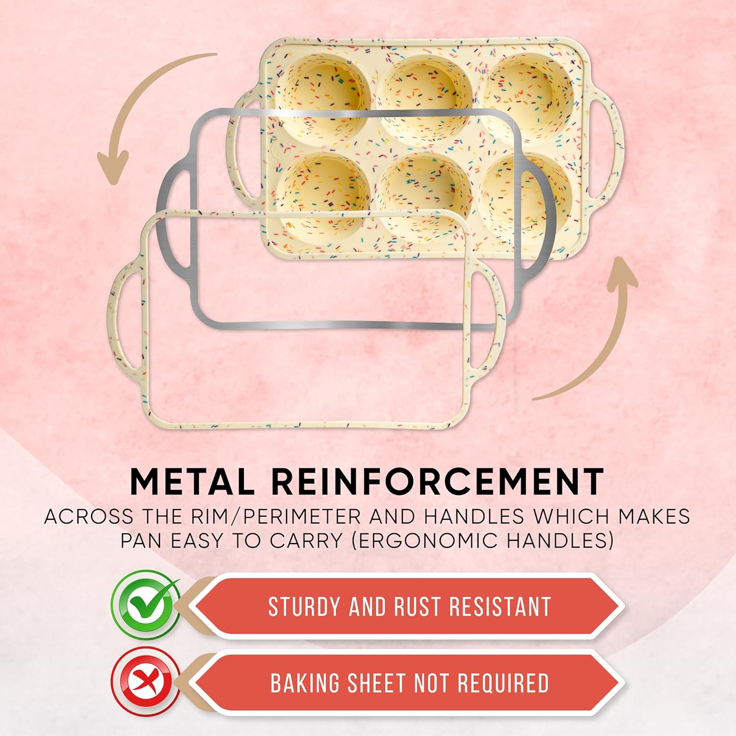 Confetti Silicone Jumbo Muffin Pan 6 Cup–Non-Stick Cupcake Pans for Baking, Heavy-Duty Large Silicone Muffin Pans for Baking, BPA-Free, Easy-Release, Oven & Dishwasher Safe