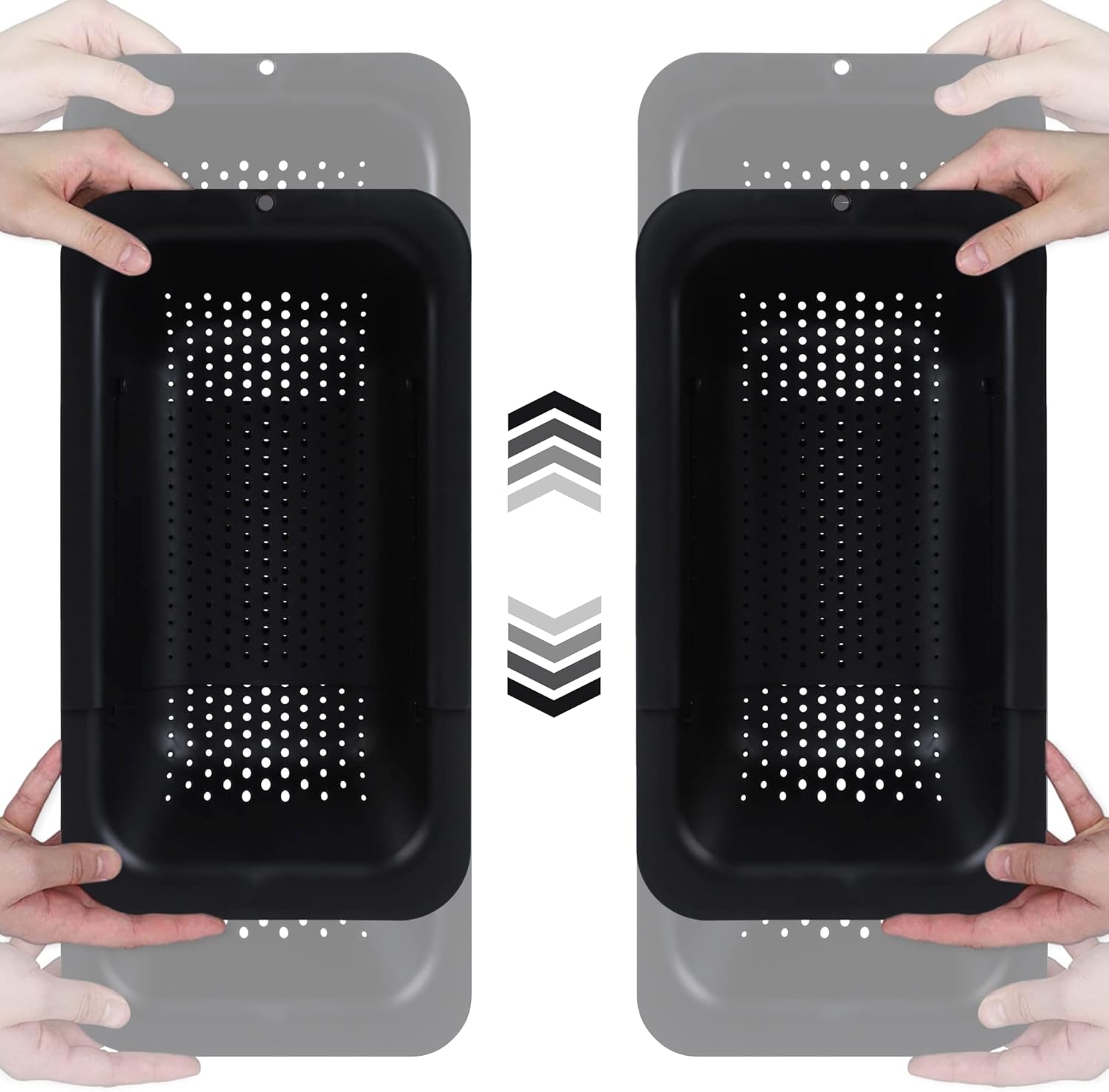 BLUE GINKGO Sink Colander Baskets - (Pack of 2) Wash Vegetables and Fruits, Drain Cooked Pasta and Dry Dishes - Extendable - New Home Kitchen Essentials (2 Black)