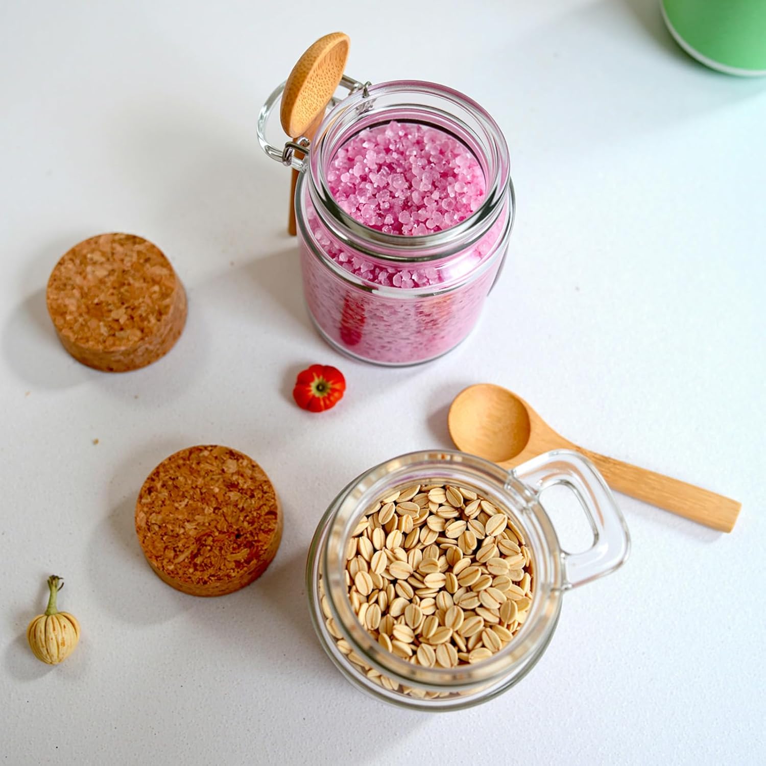 - What you will get: empty salt cellar glass jars-12 pack, corks-12 pack, bamboo lids-12 pack, brushes-2 pack, bee charms-12 pack, thanks tags-12pack, 11m jute, 2 Lables