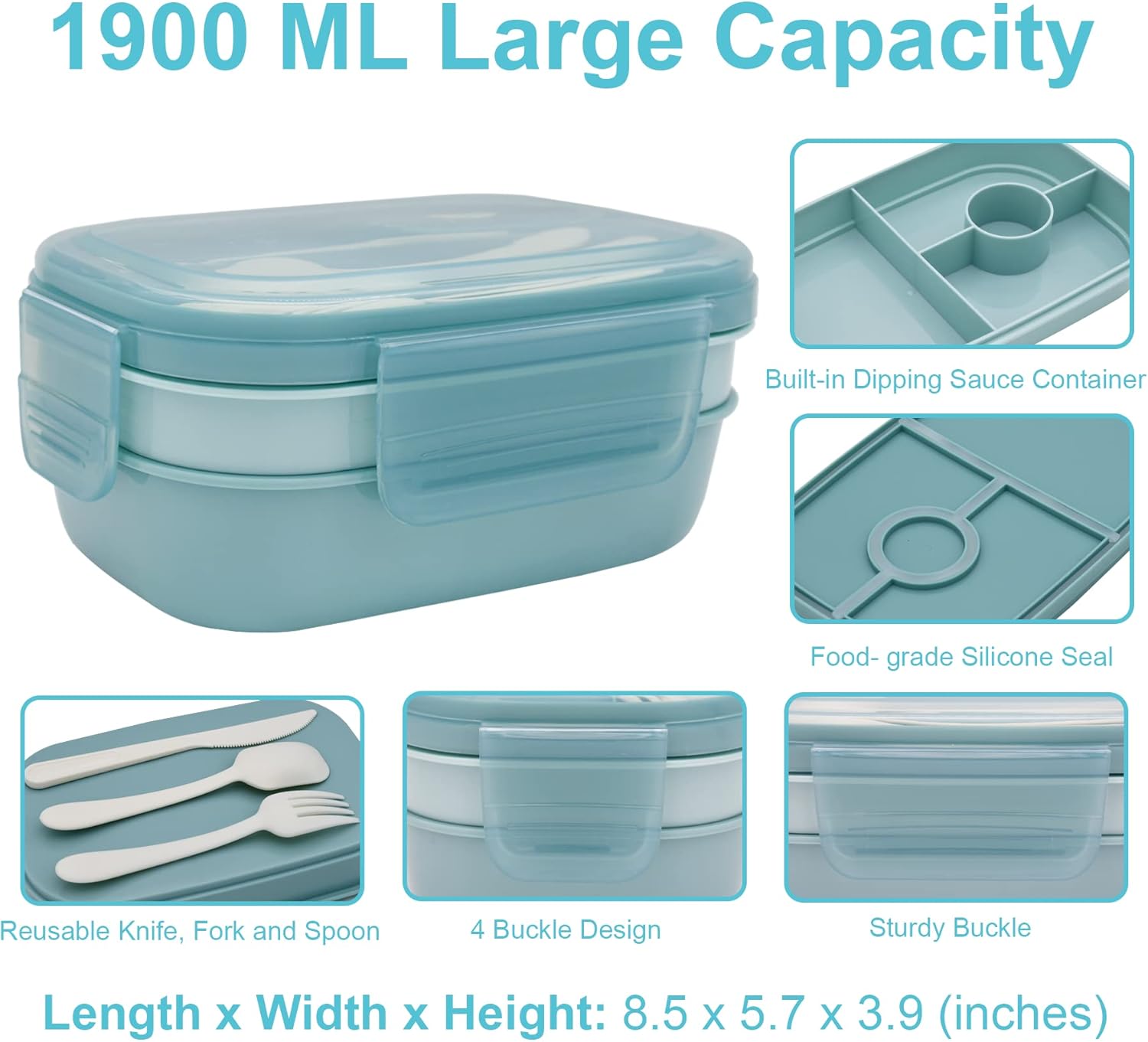 - Multi Compartment Design: 3 stackable containers, the middle container has three built-in compartments including a dip compartment, the bottom container is suitable for packing staple food, and the top has a separate tableware storage container.