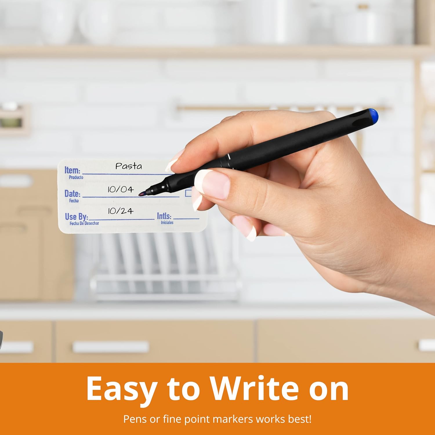 - Perfect for Kitchen and Restaurant Use: Designed to withstand heat, fridge, and freezer conditions, these labels are ideal for jars, bottles, storage containers, and more. For best results, apply to frozen items before storing. They are perfect for both restaurant kitchens and food storage.