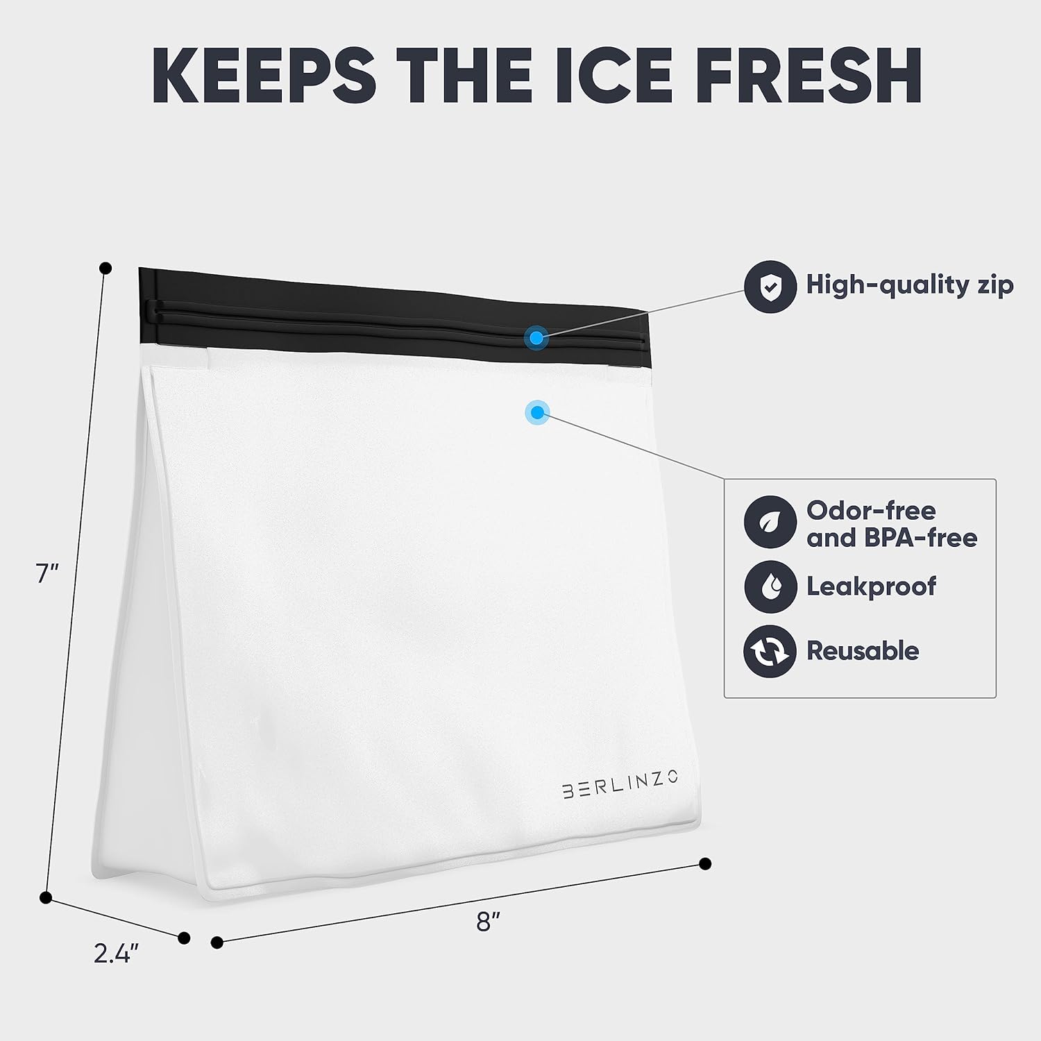 - CLEAR ICE BAG DESIGN: The clear design of our Berlinzo ice storage bag allows you to see the contents inside without opening the bag. Easily identify the amount of ice cubes stored, making it convenient to plan for parties, picnics, or any other occasion. Stay organized and always know when it's time to refill.