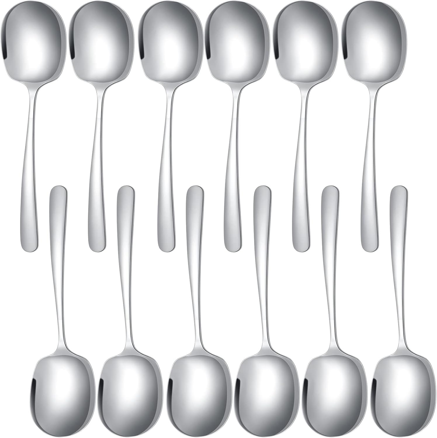 12 Pcs Stainless Steel Serving Spoons Set for Buffet, 8.3 Inches Large Serving Utensils Dishwasher Safe Metal Polished Buffet Spoons for Food Cooking Catering Kitchen Banquet Restaurant Home