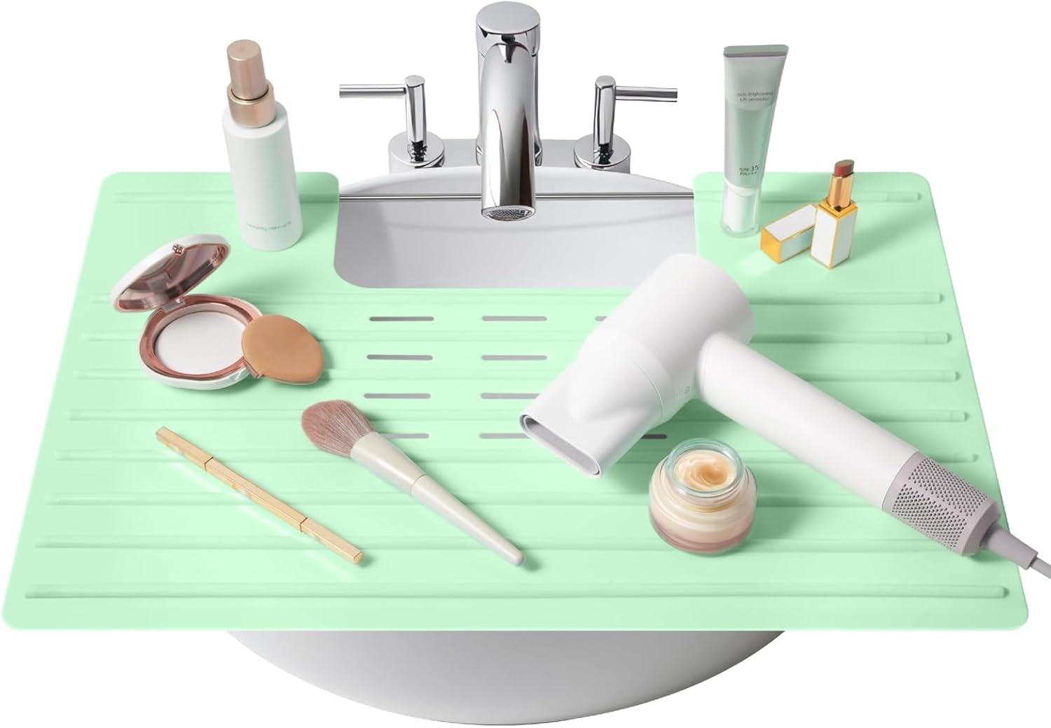 - Maplefield Quality and Design: Enhance your bathroom with the Maplefield Silicone Over-the-Sink Makeup Mat, a perfect blend of style and function. Its heat-resistant silicone provides a safe surface, perfect for your vanity sink cover needs