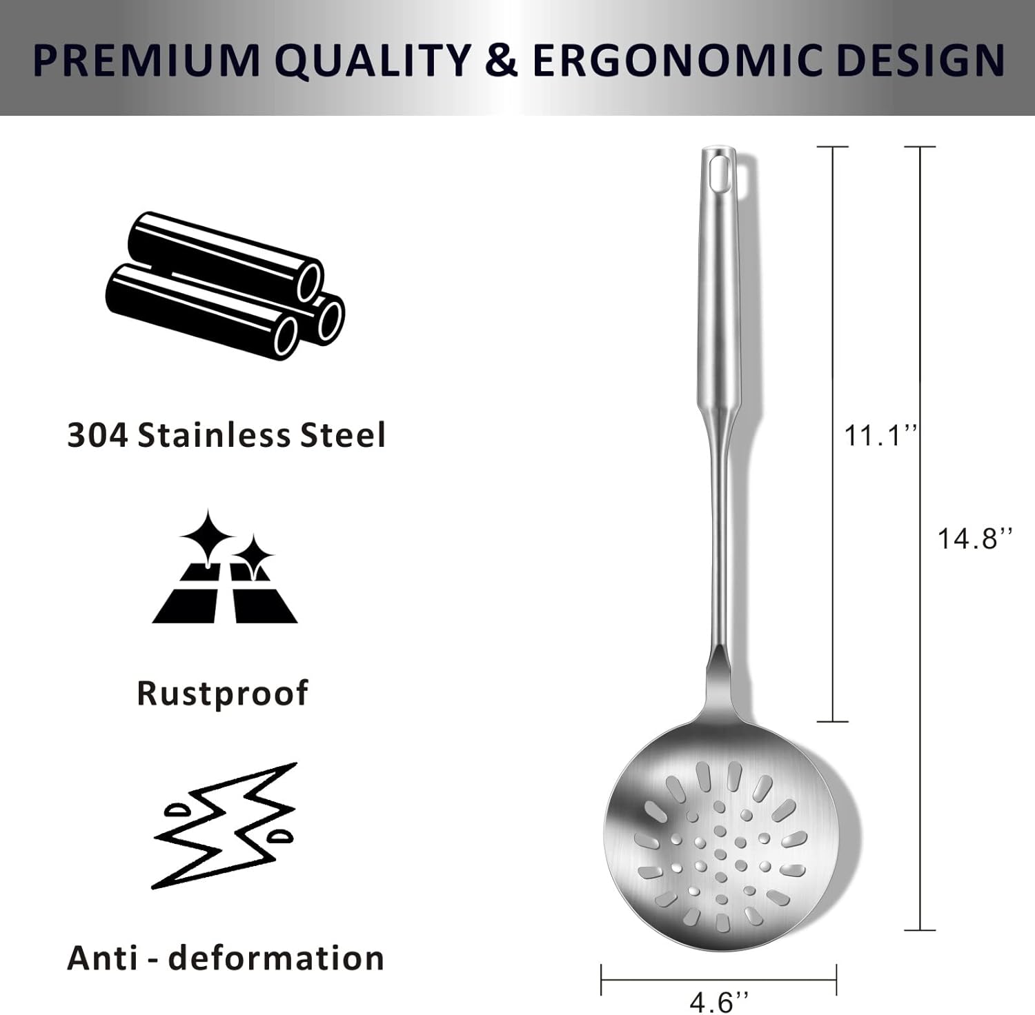 Yimi Cooking Skimmer Slotted Spoon, Durable 304 Stainless Steel Frying Strainer Ladle with Vacuum Ergonomic Handle, Heat Resistance Fryer Scoop Kitchen Utensil, Ideal for Gift, 14.8 Inches