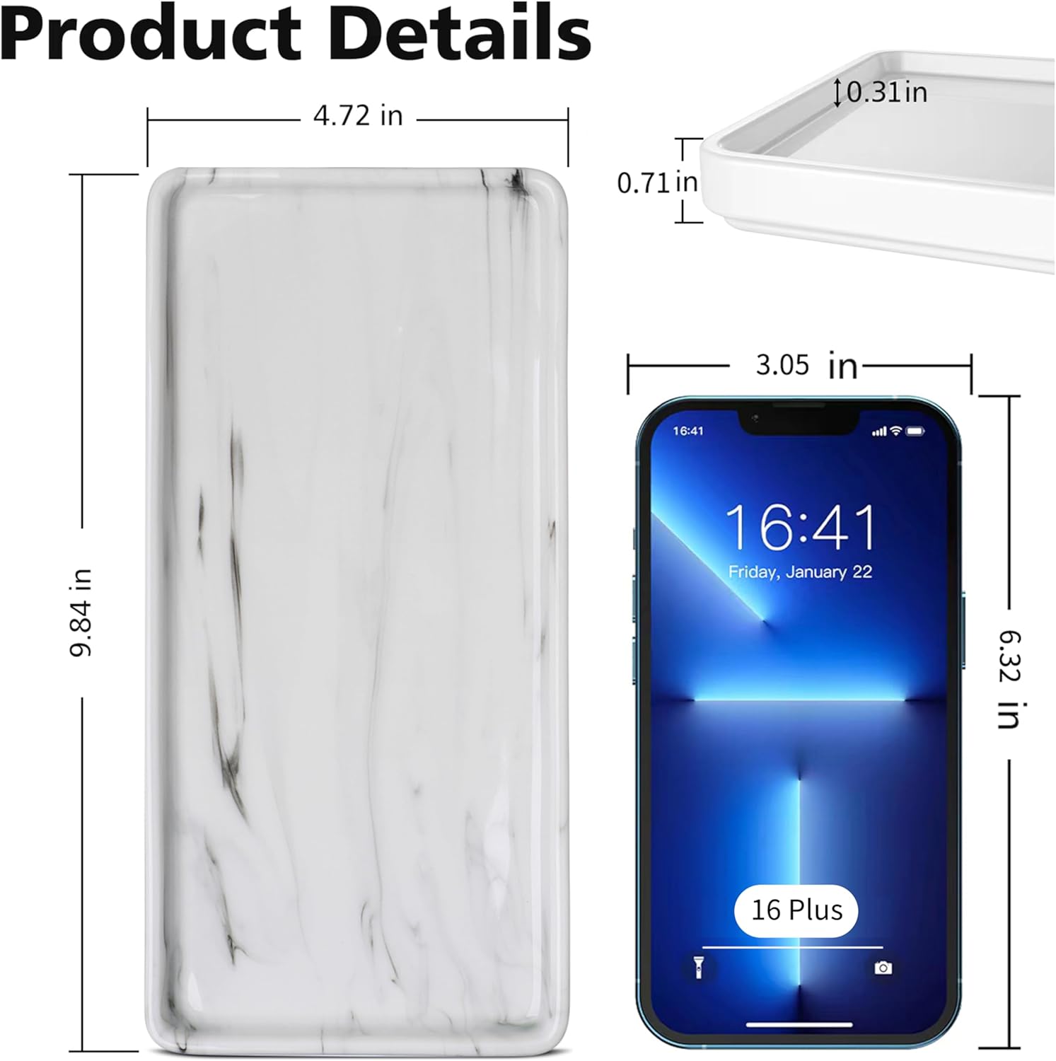 - UNIQUE COLOR: Marble White; Due to the particularity of the craftsmanship, the marble patterns of each tray are different, and each one is unique