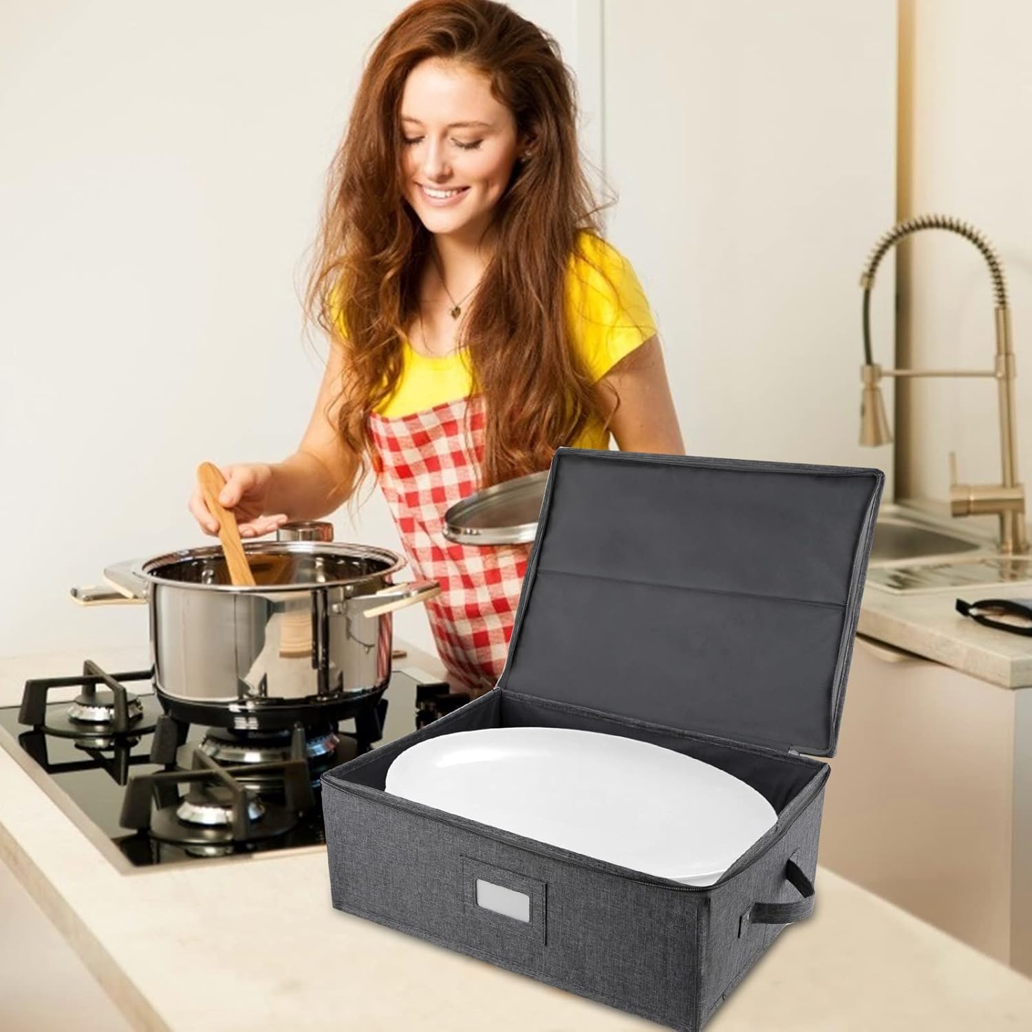 - PREMIUM DURABLE MATERIAL - The china platter storage containers is made of premium 300D oxford fabric and sturdy thick cardboard, each dish storage box holds 6 plates, each includes 5 felt plate separators for protection against chipping and scratching
