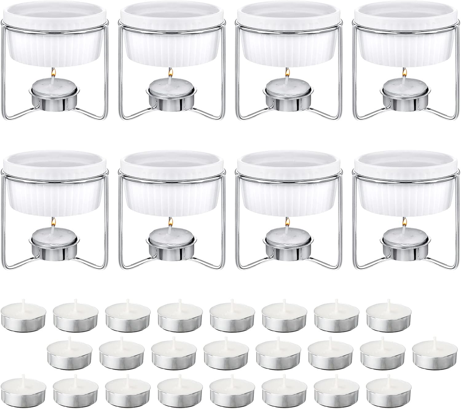 Treela 40 Pieces Ceramic Butter Warmers Set Included Butter Warmers Melter and 32 Tealight Candles for Chocolate Cheese Fondue Crab Lobster Microwave Oven Safe