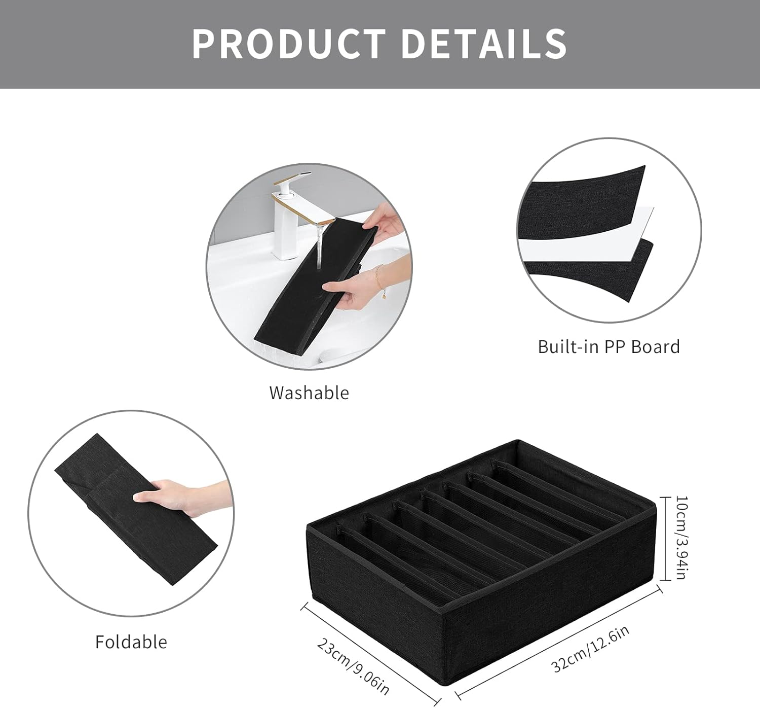 - PREMIUM QUALITY MATERIAL: The clothes organizer for folded clothes are made of PBT fabric, which is moisture-proof and very durable. The square boards are made of PP (Polypropylene), which is high heat-proof, smooth and light. These drawer organizers for clothing are washable, but the fabric contains a hard PP board, so please wash them by hand instead of using the machine.