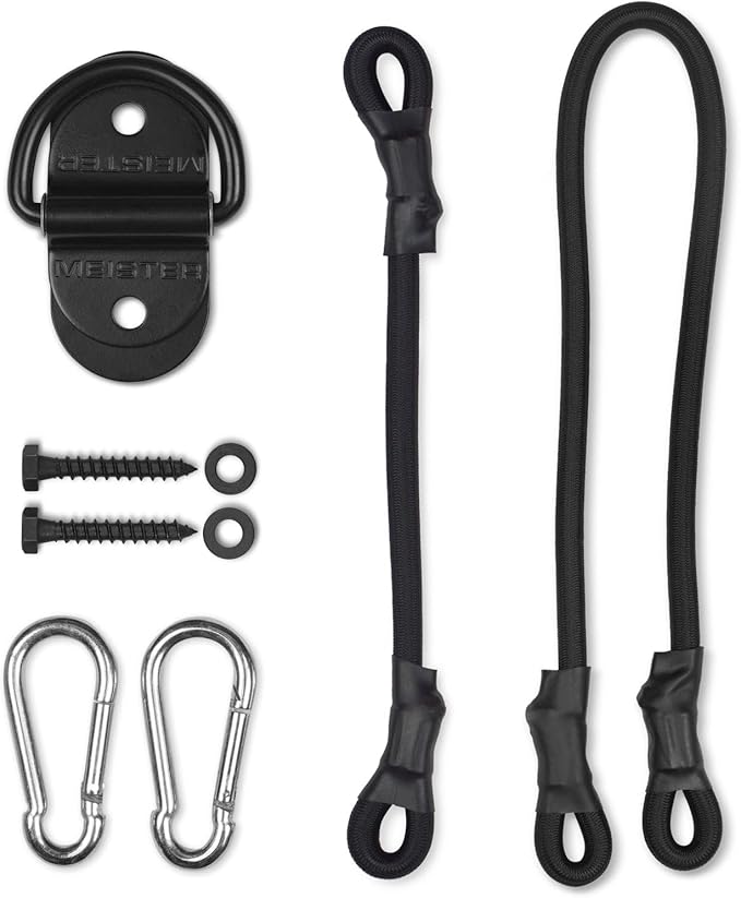 - Includes 10" and 24" bungee cords with high-quality carabiners. Can be adjusted to fit any bag height. Includes black hex lag bolts and washers