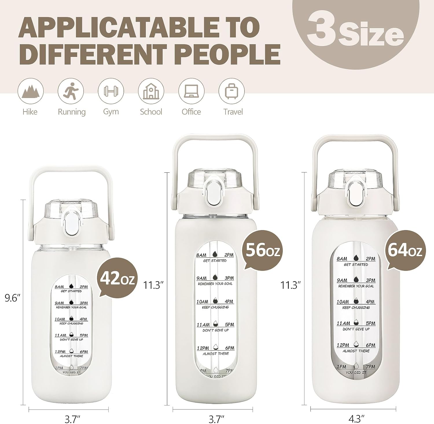 - Motivational Inspiration: The water bottle has motivational quotes and time markers to remind you to drink the perfect amount of water.