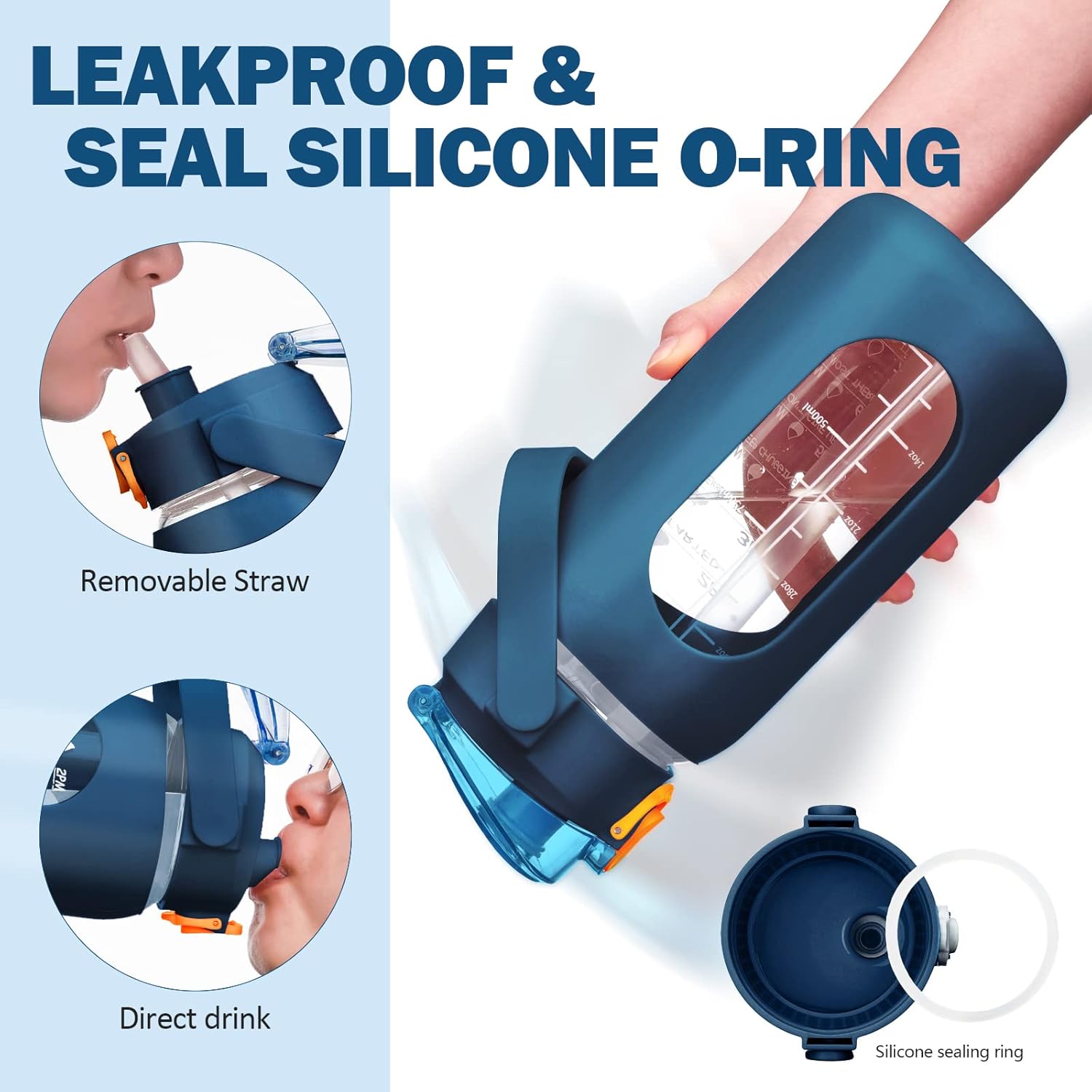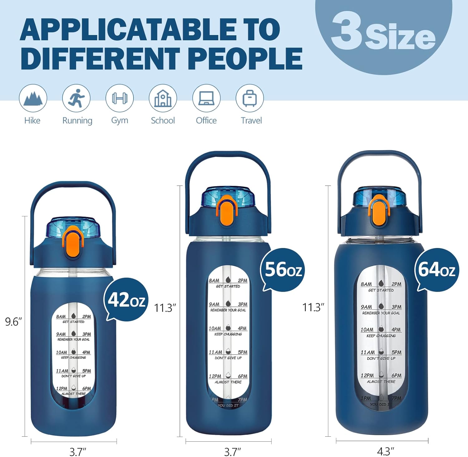 - ❤High-Quality Borosilicate Glass Bottle- This large motivational water bottle is made of odorless, quality, borosilicate glass. Straw and lid are made of food-grade PP, BPA-free and eco-friendly.