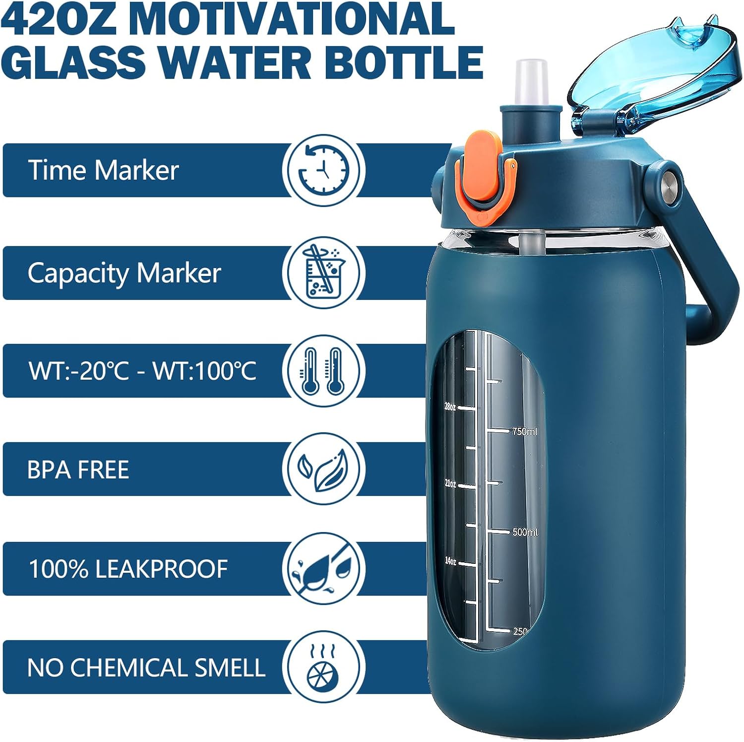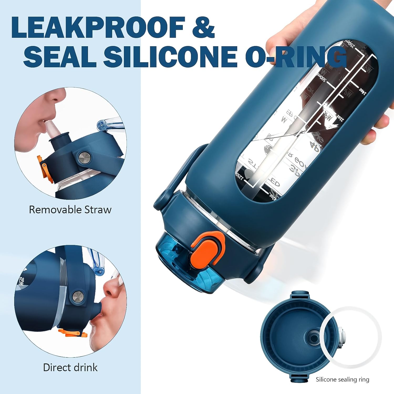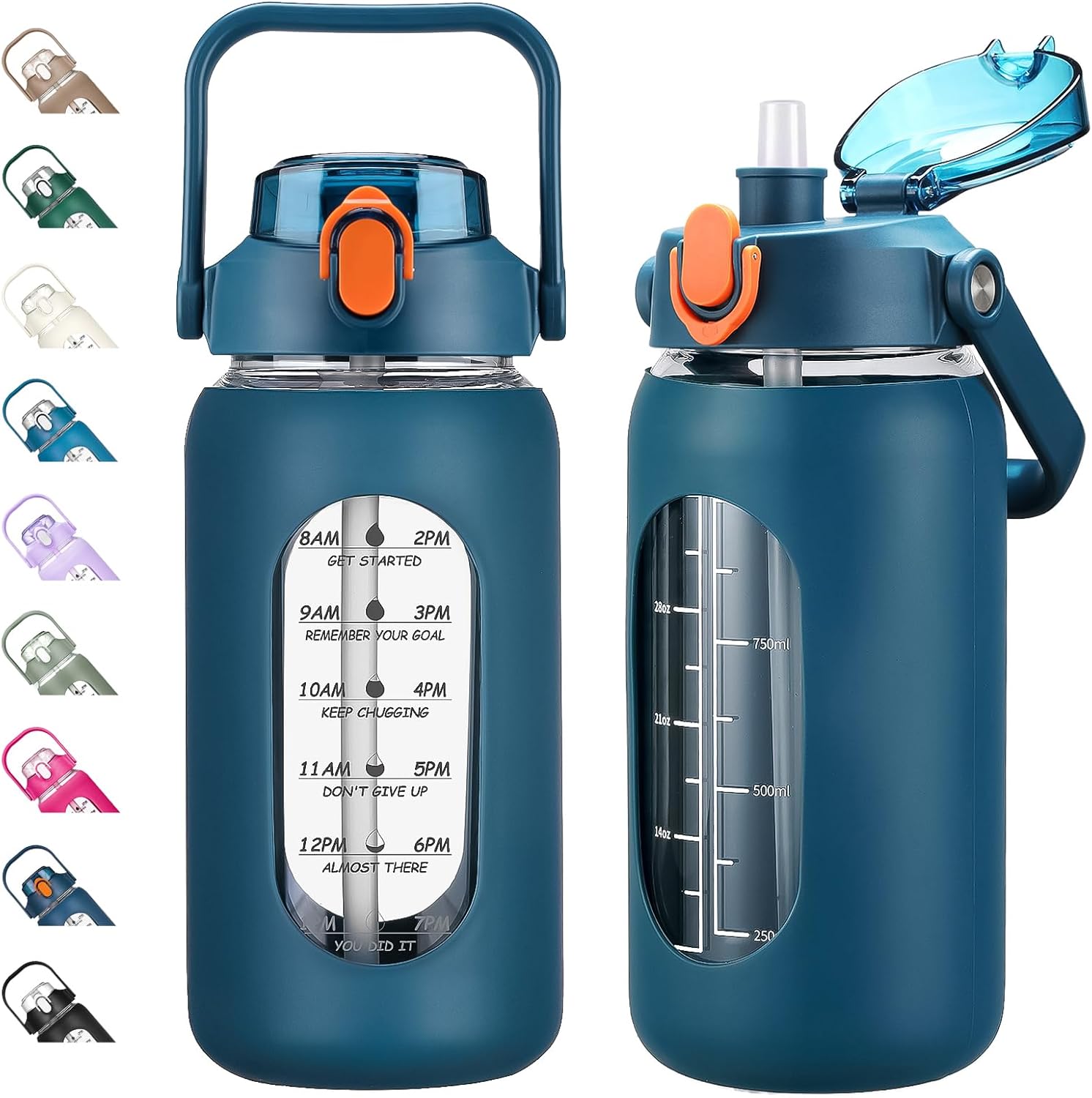 - ❤High-Quality Borosilicate Glass Bottle- This large motivationla water bottle is made of odorless, quality, borosilicate glass. Straw and lid are made of food-grade PP, BPA-free and eco-friendly.
