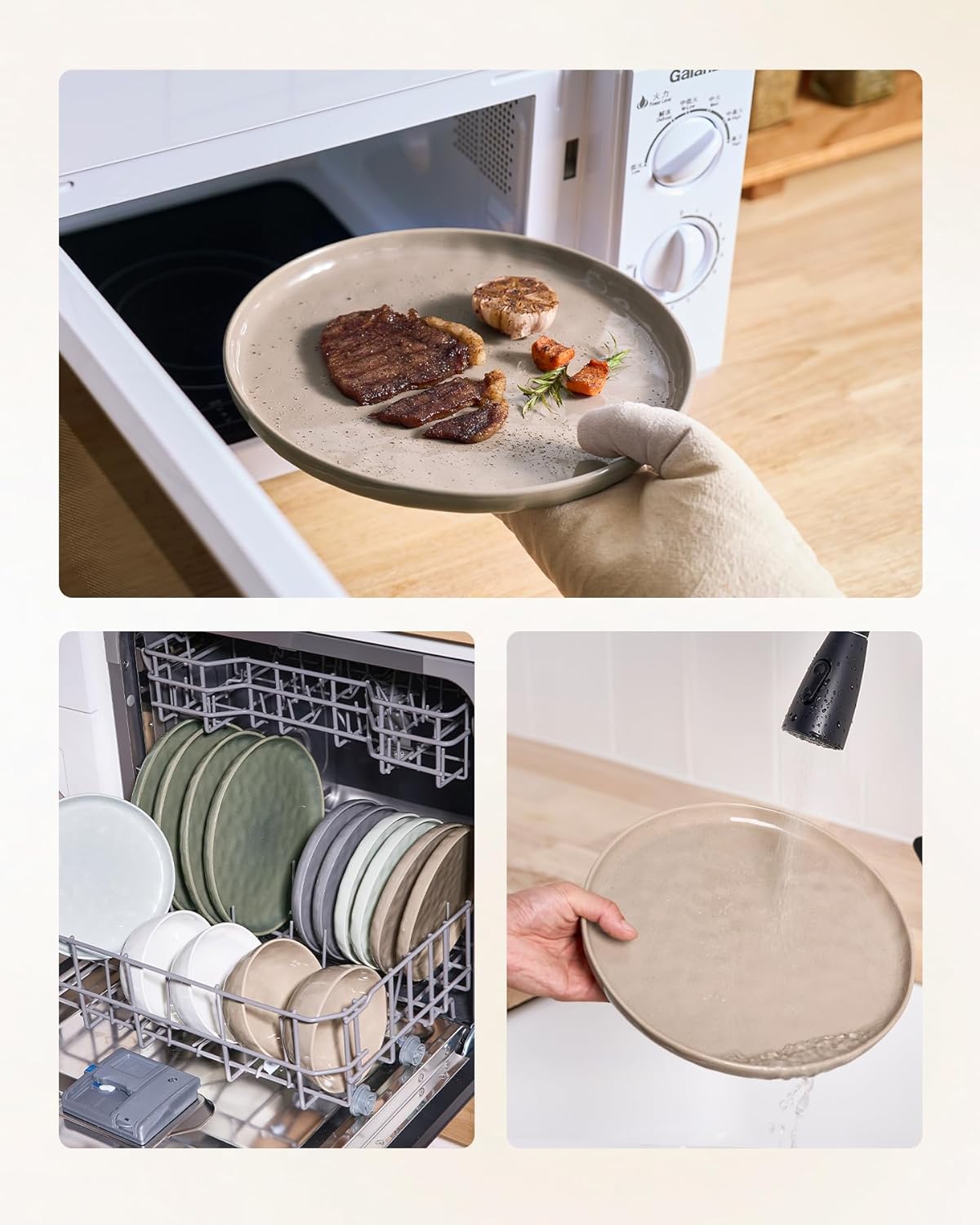 - 【Wave Surface Design】The wave surface design creates a special gloss of our glaze, which makes the dishes elegant and anti-skid. The elegant design is integrated with most kitchen environments.