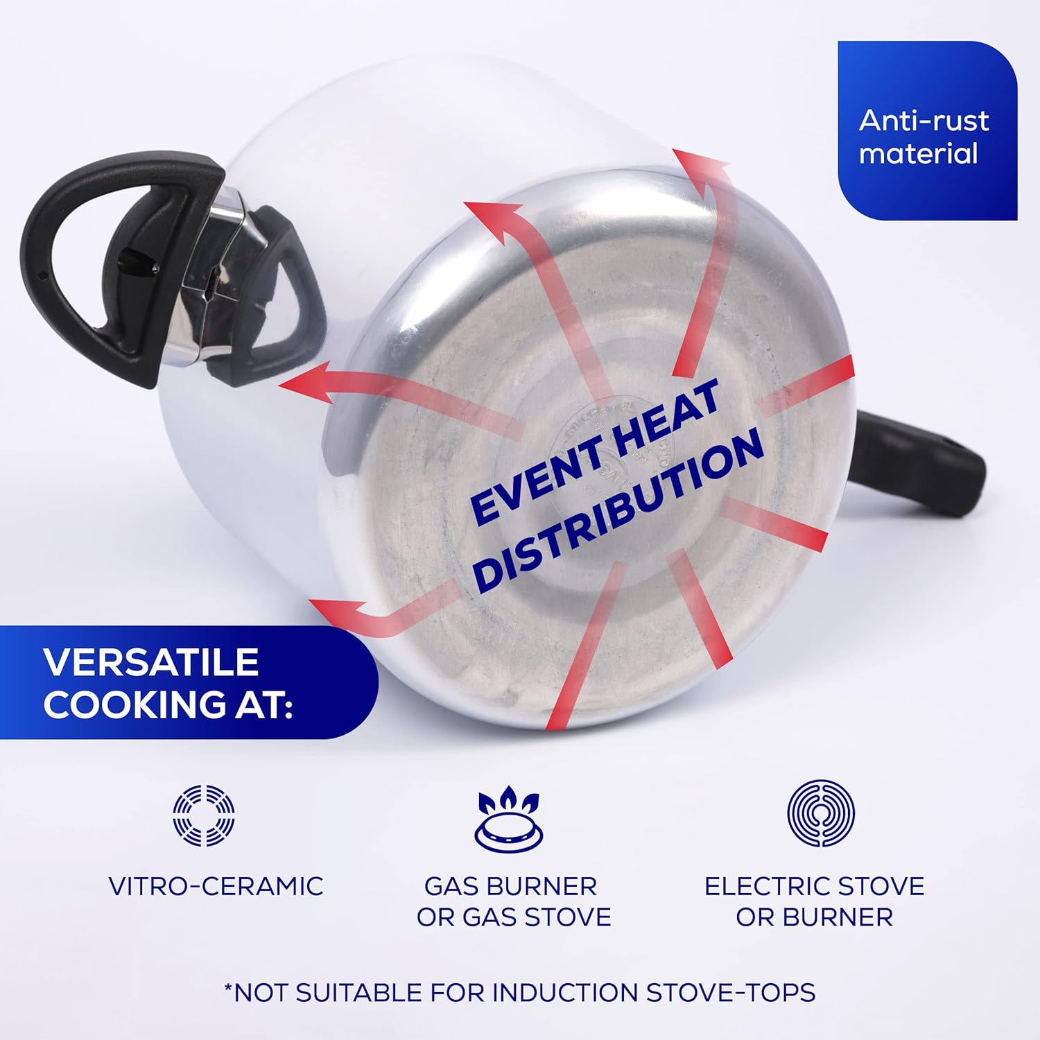 - Designed for Home & Professional Use – Versatile Stovetop Compatibility: Whether in a family kitchen, restaurant, or catering environment, this pressure cooker performs exceptionally on gas, electric, and glass-ceramic stovetops. (Not suitable for induction cooktops.)