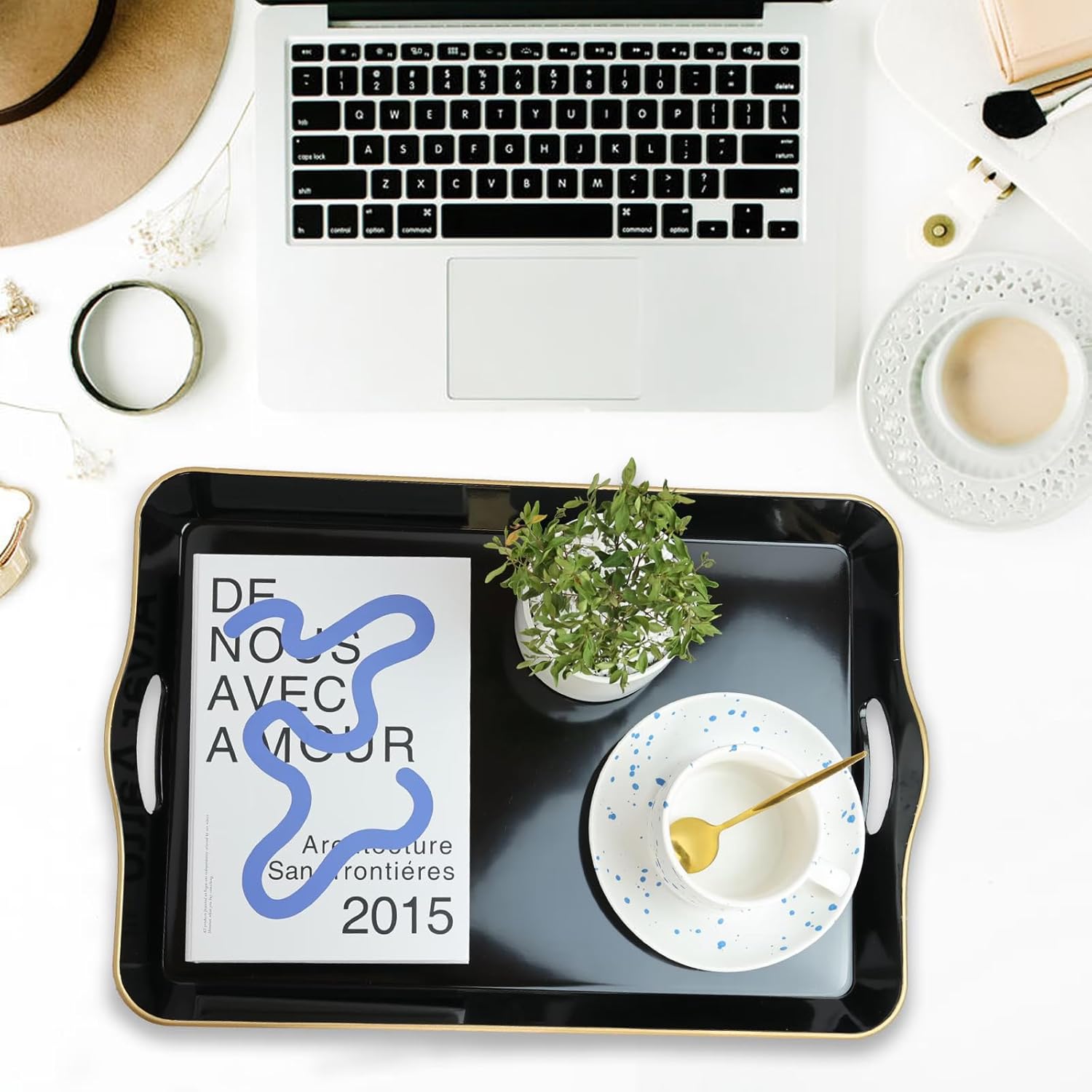 - Unique: Beautiful decorating trays with a glossy finish, giving them unique look appeal that adds to the home's charm. The organizer tray may also be used as a storage bin for small items like keys or TV remotes