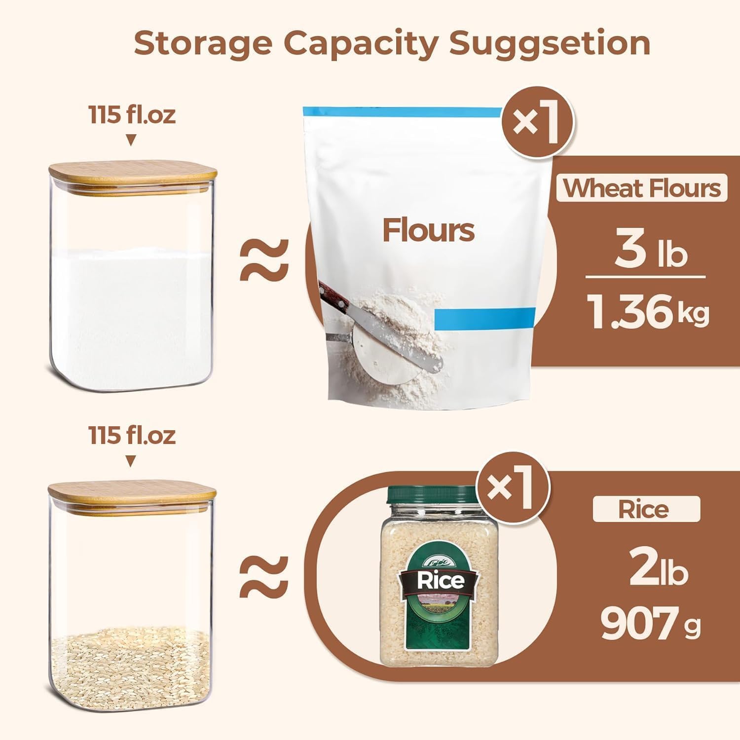 - Wide Mouth Design: Featuring a spacious 5.9" wide mouth for effortless access. Whether you're scooping rice, flour, sugar, or other dry goods, our wide-mouth design ensures convenient retrieval without spills.