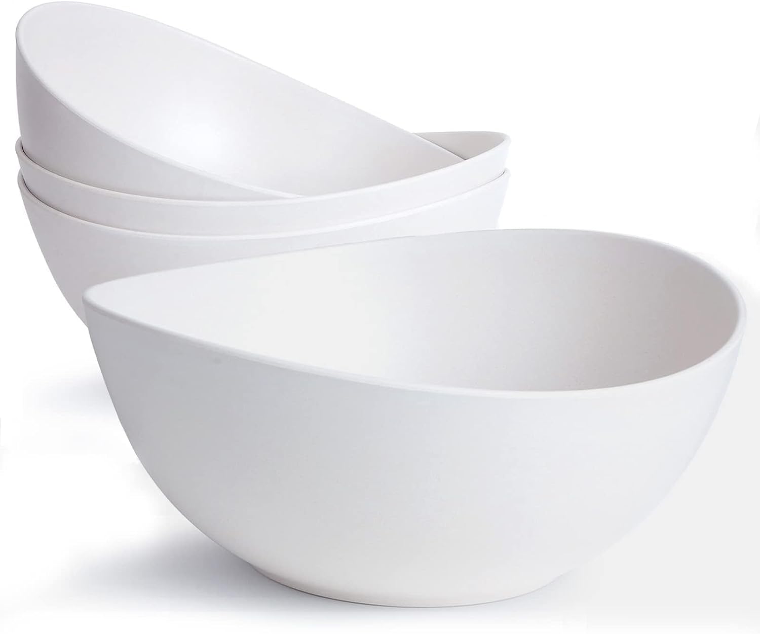 9.6'' Serving Bowls, 84oz Bamboo Fiber Salad Bowl Set of 4, Deep Serving Bowls Set, Large Oval Individual Bowls for Eating Salad/Pasta/Cereal/Pho, Ideal for Home & Restaurant (Matte White)