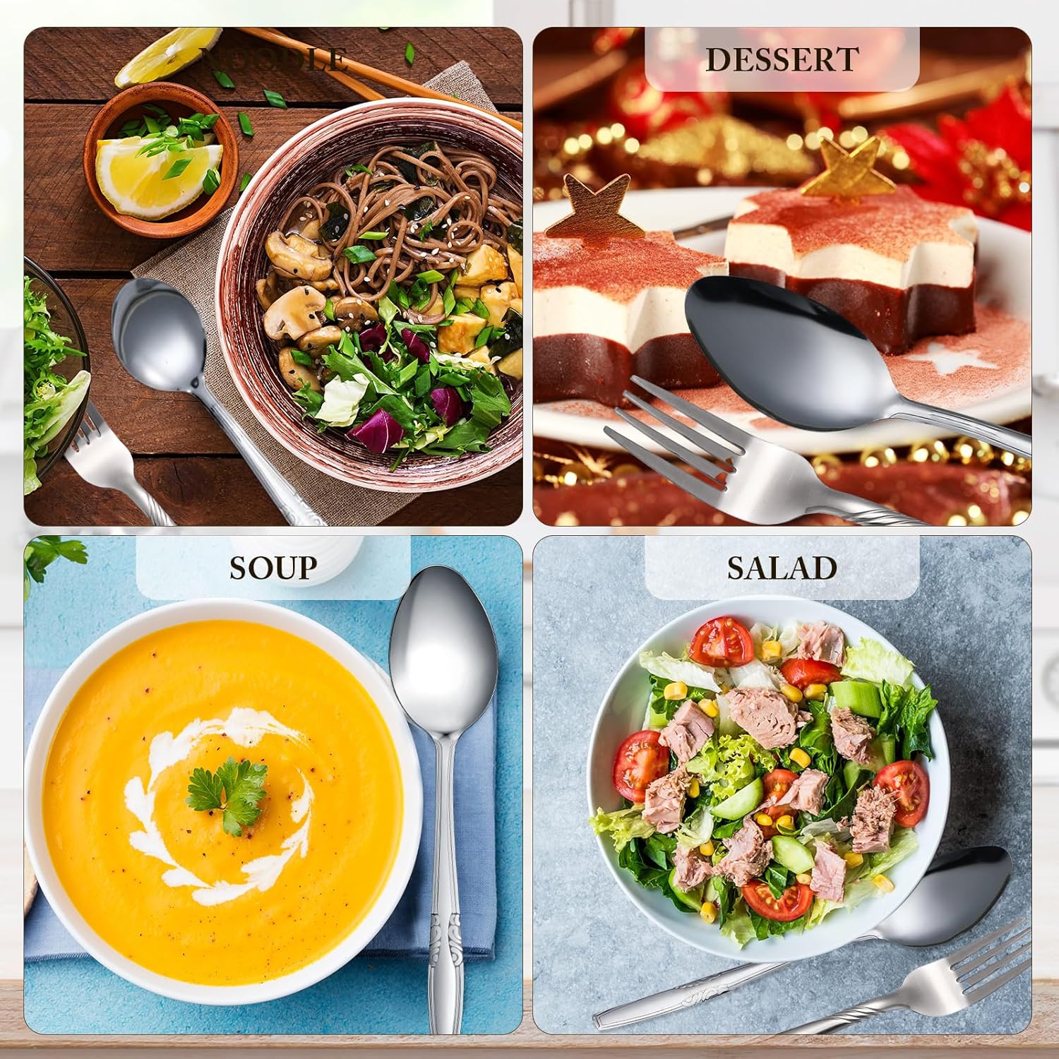 - Add a Sense of Beauty: the spoons silverware can be applied for many occasions, such as salad, spaghetti, pizza and more, nice for restaurant, family kitchen, picnic, camping, hotels and so on