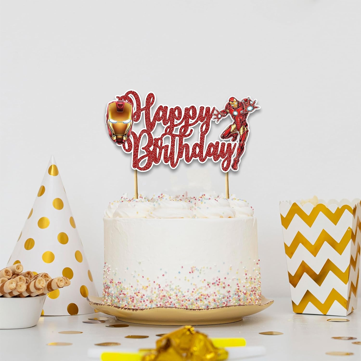- Irn Man Theme: Featuring the legendary Irn Man suit and the iconic red and gold design, this topper is the perfect addition for any superhero-themed birthday party.